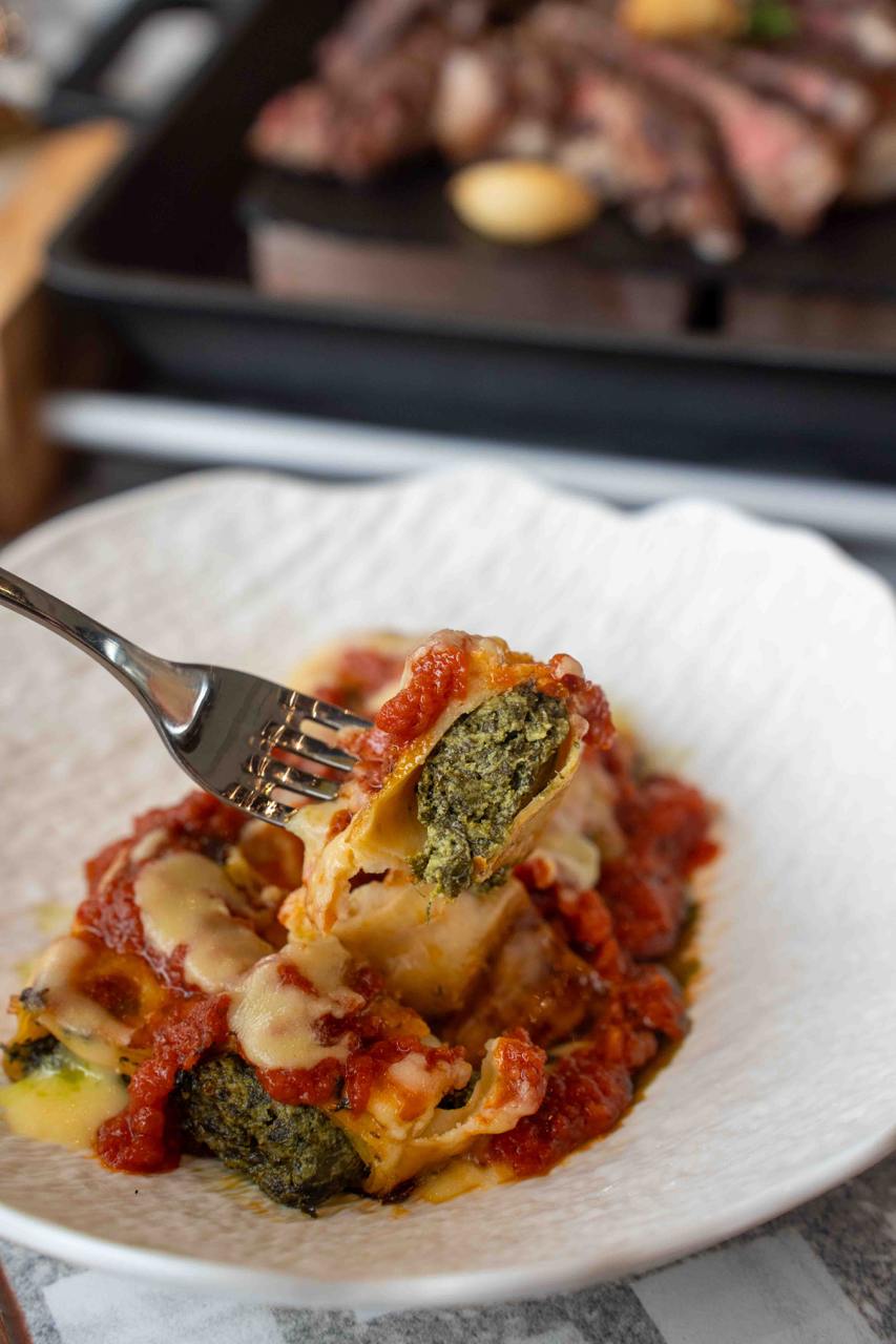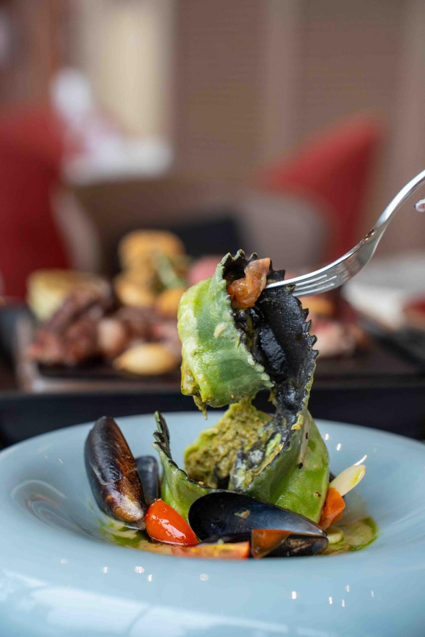 The main restaurant is housed in an indoor glasshouse with floor-to-ceiling windows that offer a perfect view outside. The menu at La Torre is created by MONTI, so you can expect classic and homey Italian dishes but with a modern touch. Food items are pretty affordable, with mains starting from $13. The $13 mains include Fettuccine Flat Egg Pasta ($13/half portion), La Torre’s Pan Roasted Lasagna ($13/half portion) and Cannelloni Della Nonna ($13/half portion). They’re known for their pasta dishes, and we particularly enjoyed the Cannelloni Della Nonna ($26) which we’re told is a recipe from the chef’s grandma: pasta stuffed with ricotta cheese, spinach and house-made tomato sauce. House-Made Pinwheel Pasta ($22) is also a unique offering, and is kind of like a giant ravioli arranged in a long spiral to resemble a “pinwheel”.