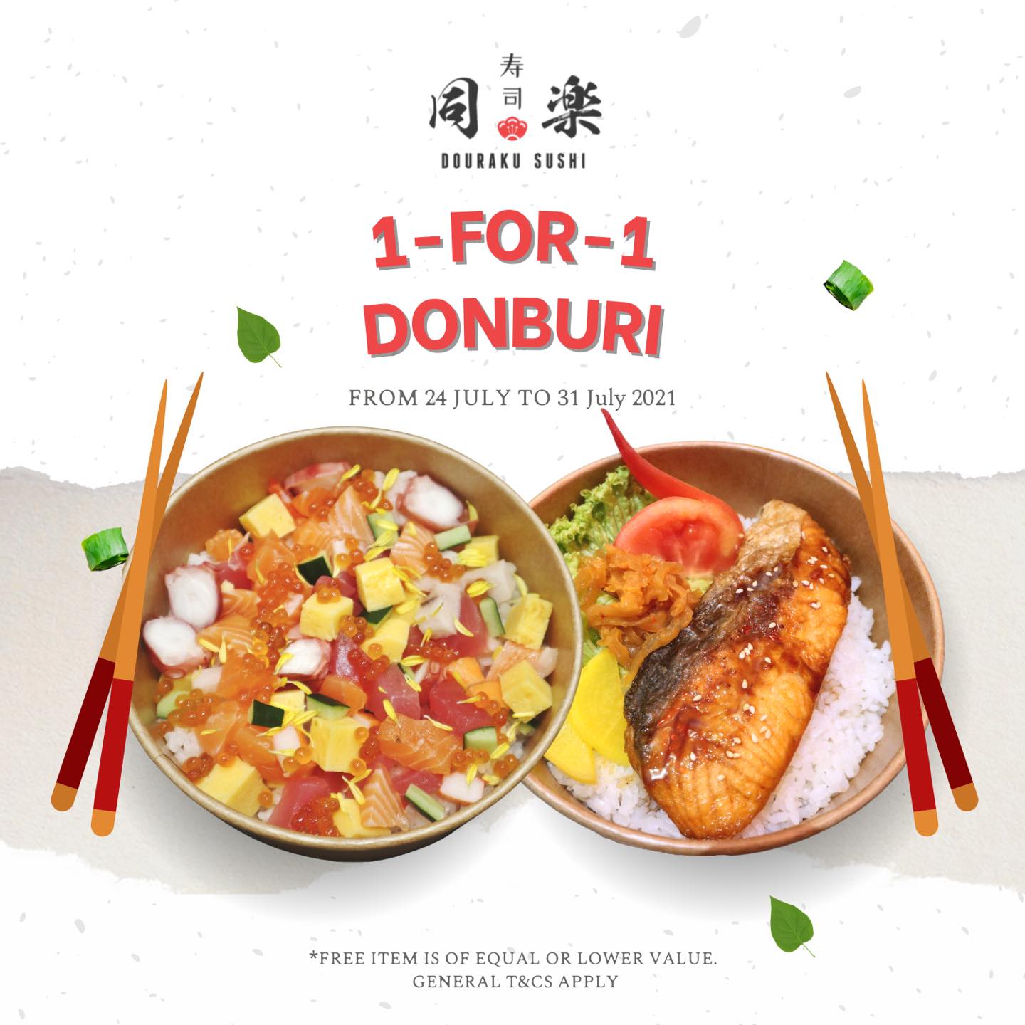 From 24th to 31st July 2021, Douraku Sushi is treating you to a 1-for-1 offer on its delectable range of popular rice bowls when you self-collect your takeaway orders. Worth an estimated $12.85 to $17.10, this promotion is valid for a slew of orders including the restaurant’s popular Truffle Karaage Chicken Chop Don, Aburi Salmon Chiraishi Don, Unagi Don, and Tori Teriyaki Don.