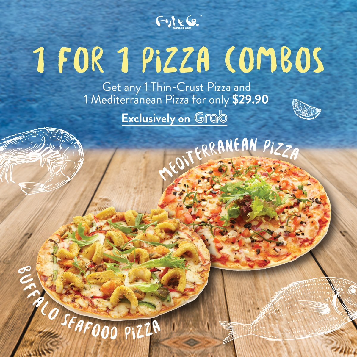 Stay safe at home with Fish & Co.’s 1-for-1 pizza combo! Available exclusively via the GrabFood app, enjoy one Mediterranean Pizza with any Thin-Crust Pizza of your choice for only $29.90! Promotional flavours include the Buffalo Seafood, Peri-Peri Chicken, and Mediterranean Garden.