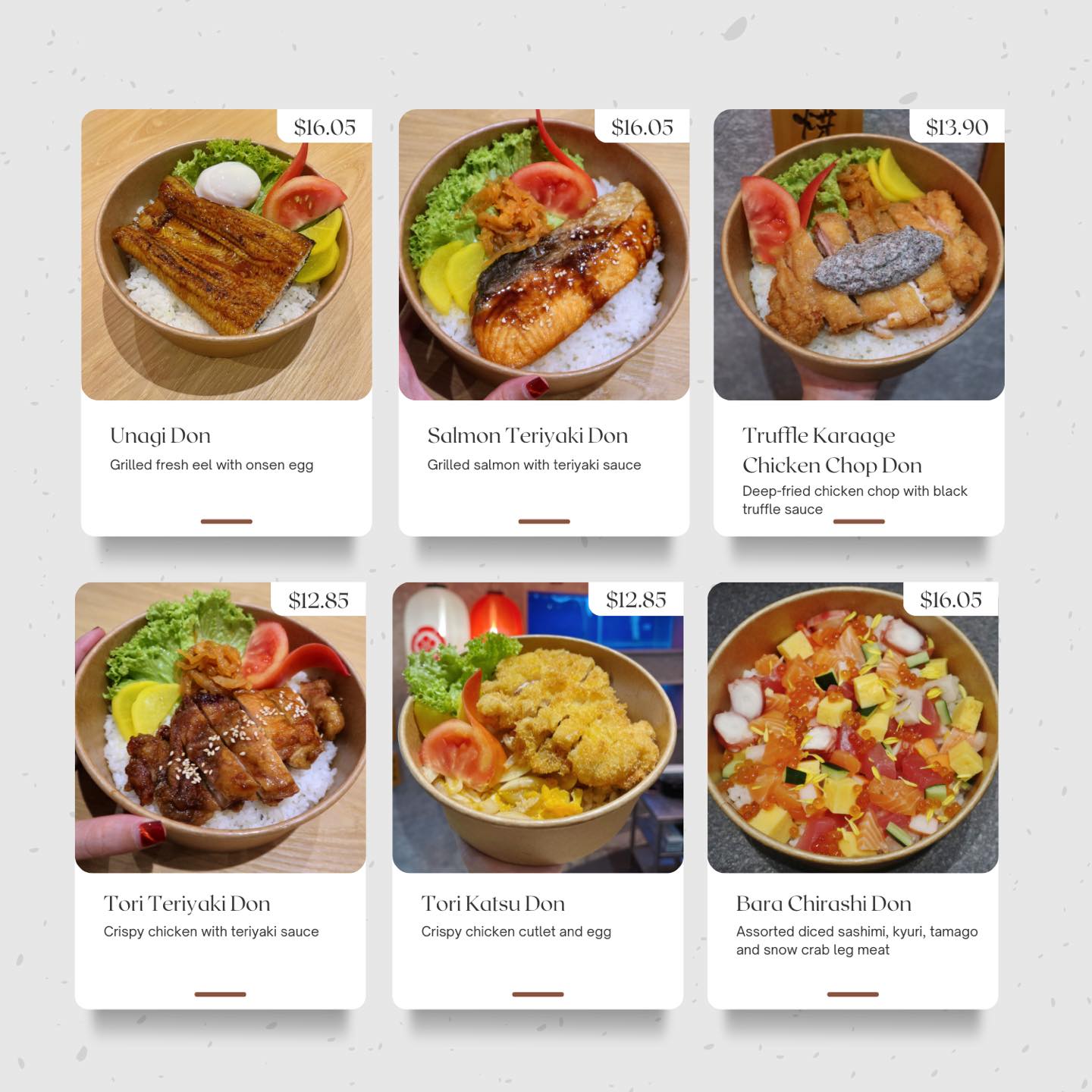 Each set meal will consist of two mains, one appetiser, one side and two drinks of your choosing which include options such as yaki gyoza, sui gyoza, aburi niku, salmon carpaccio, salted egg rolls, avocado ebi rolls, wagyu beef rolls, aburi salmon mentaiko rolls, and more.