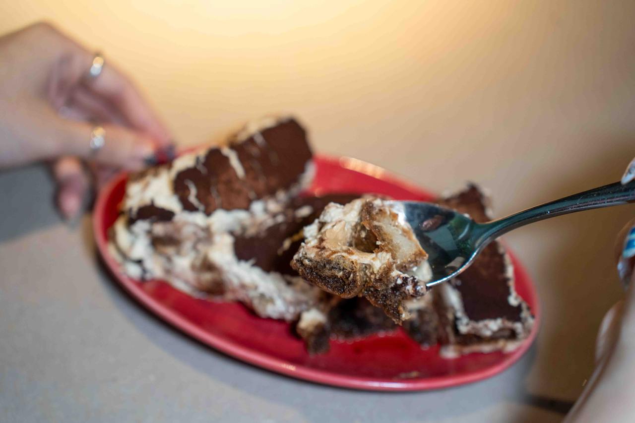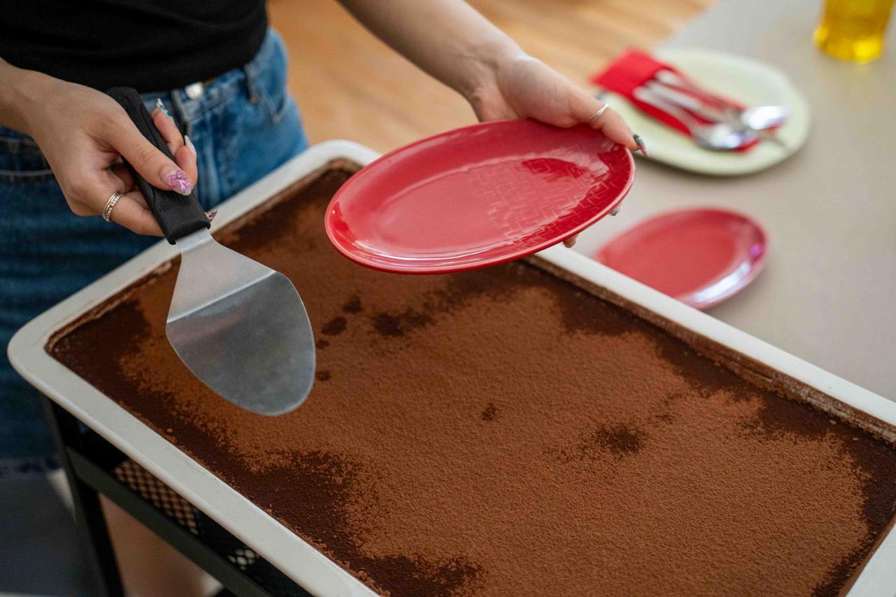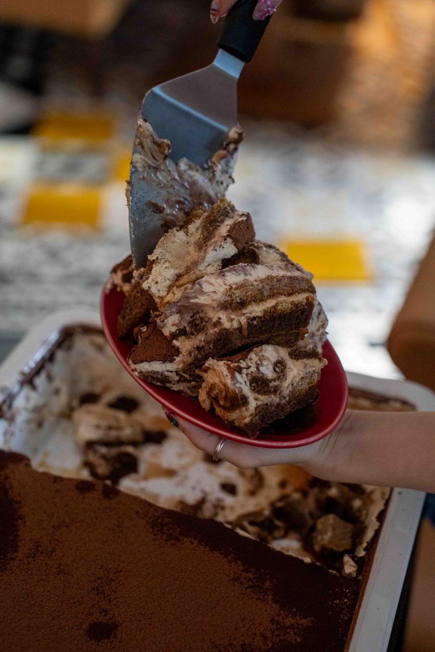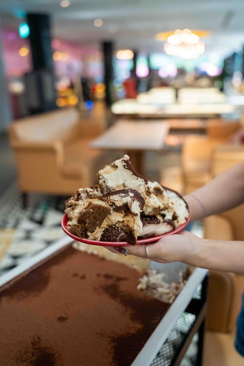 But we were much more excited about the tiramisu itself, which came in an entire tray that’s wheeled directly to our table on a trolley. The staff will even ring a bell as the trolley comes around so you’ll know exactly when the tiramisu is being served. We were then given a plate and our own scoop to scoop the tiramisu from the tray by ourselves, and we only get one chance to scoop as much as we want onto the plate (ie. no refills once you finish the plate). The plate was smaller than we expected (a little bigger than the palm of a hand) but we still managed to heap 6 scoops of tiramisu onto our plate.