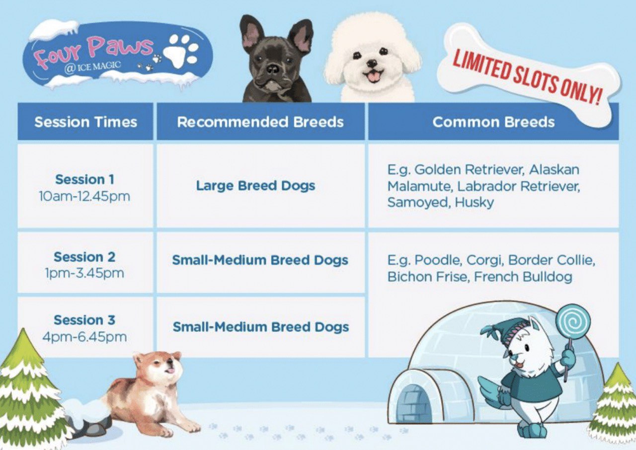 Look forward to gliding down and around exciting rides with your dog, like the 5-Lane Mini Ice Slide, Merry-Go-Round on Ice, 300sqm Ice Rink, Double Lane Couple Ice Slide and more! Dog owners are reminded to dress their dogs appropriately to protect against the cold. Additionally, all dogs must be leashed and held securely by an adult companion; female dogs must wear diapers while male dogs must wear belly bands.