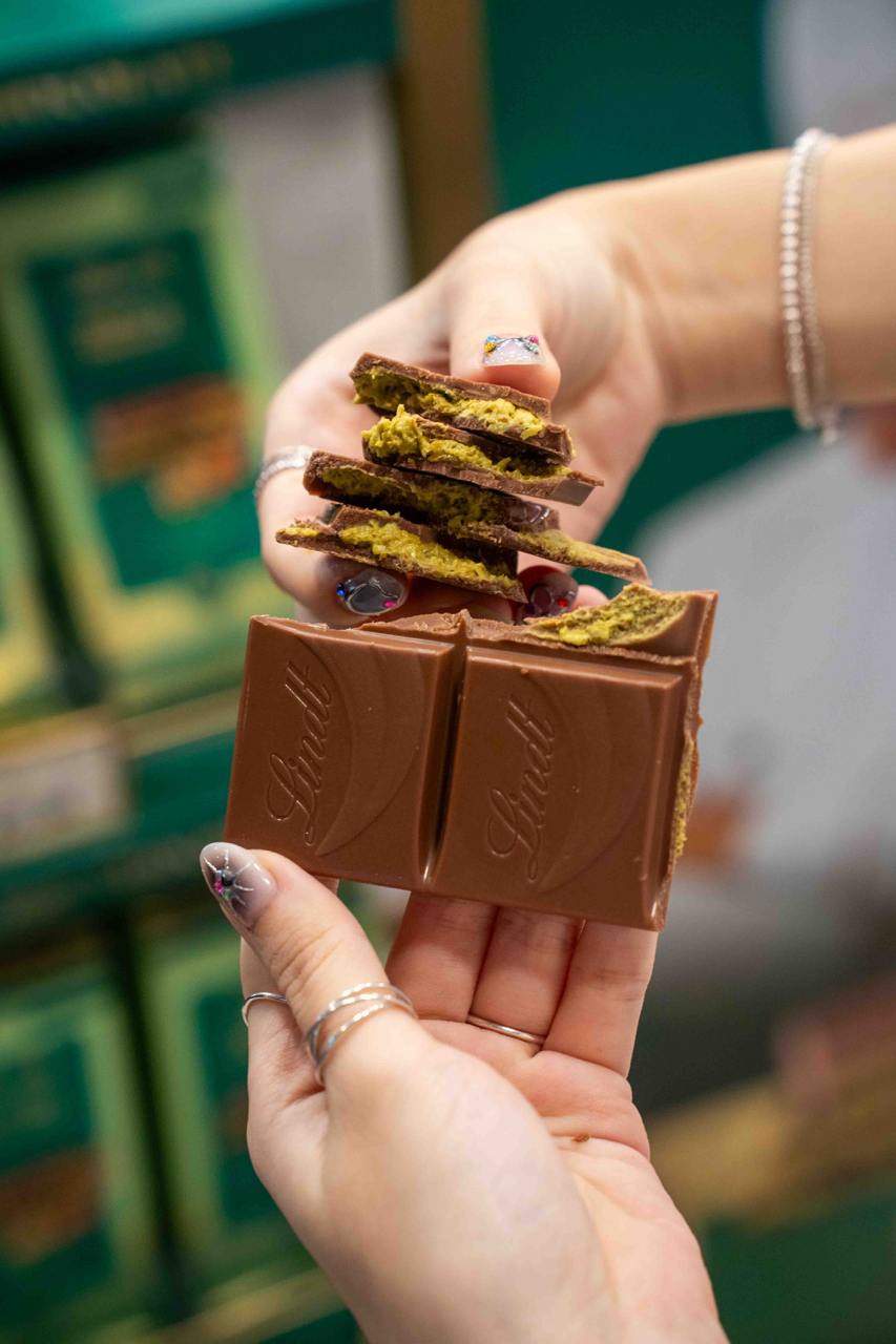 One of the highlights at the store has got to be Lindt’s new Dubai Style Chocolate ($23.90), inspired by the viral pistachio kunafa chocolate bars. These are a new addition to Lindt’s offerings, and are making their exclusive debut in Singapore here at the Changi Airport boutique. Lindt’s version of the Dubai chocolate is made with milk chocolate and 45% pistachio filling. The Dubai chocolate is always made fresh, and we liked that it’s not overly sweet or cloying, while still being super rich and indulgent.