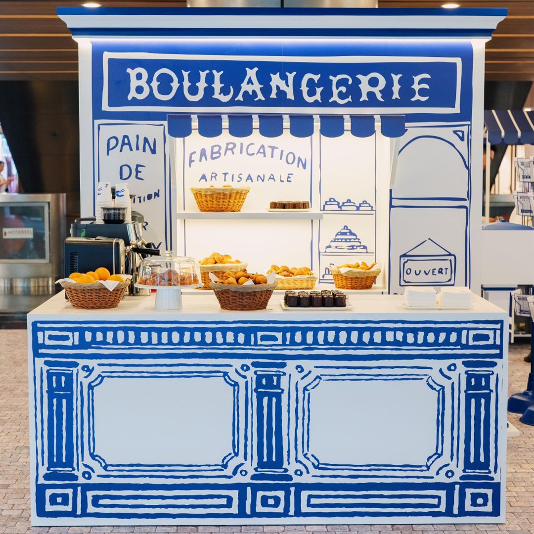 The Parisian-themed pop-up space is decked in white and blue, and is inspired by the quaint cafés or shops you might find along the streets of Paris. The signature blue illustrations are created by Constantin Riant, and you’ll see his iconic style through Longchamp’s latest Constantin capsule collection as well.