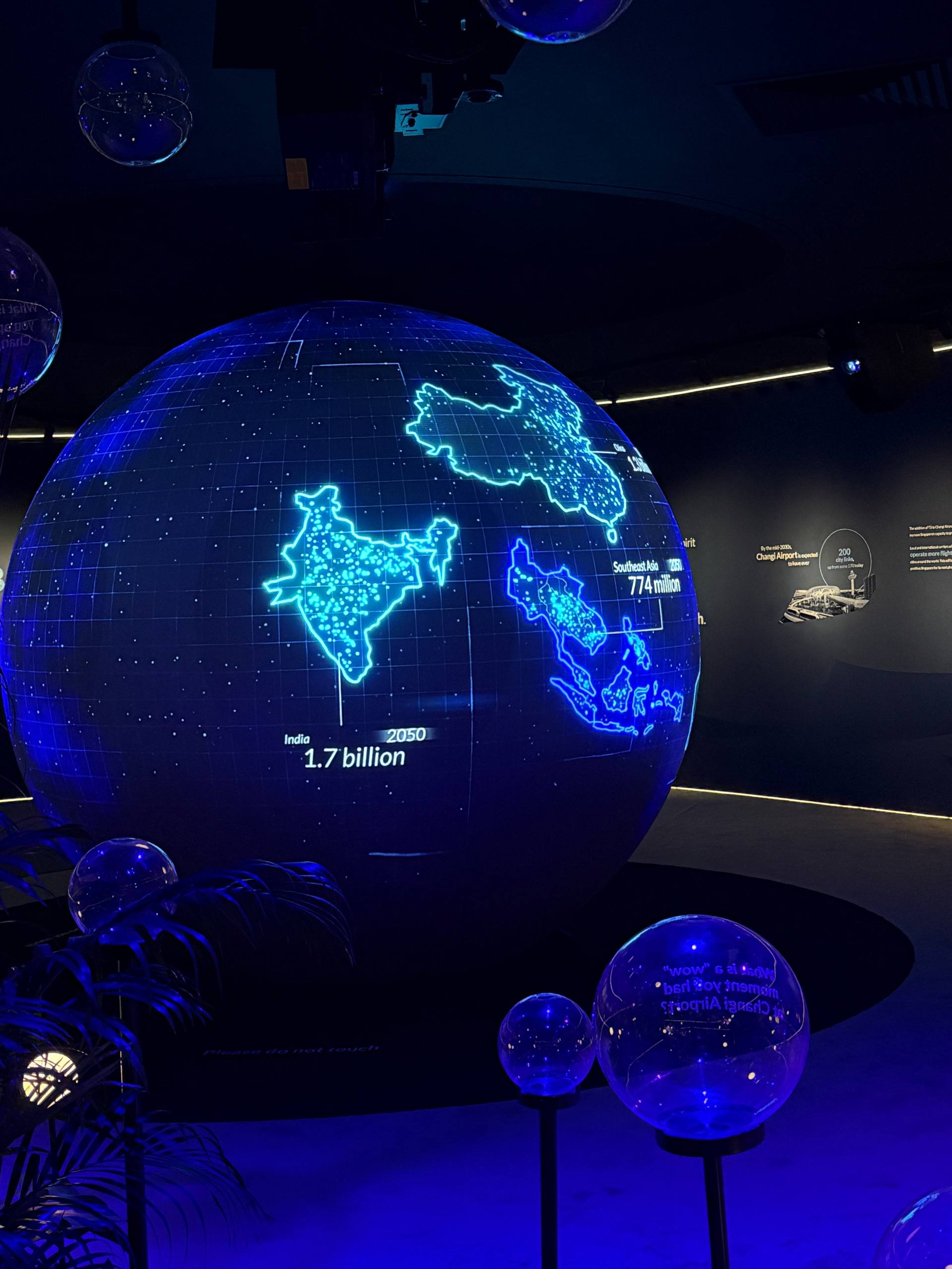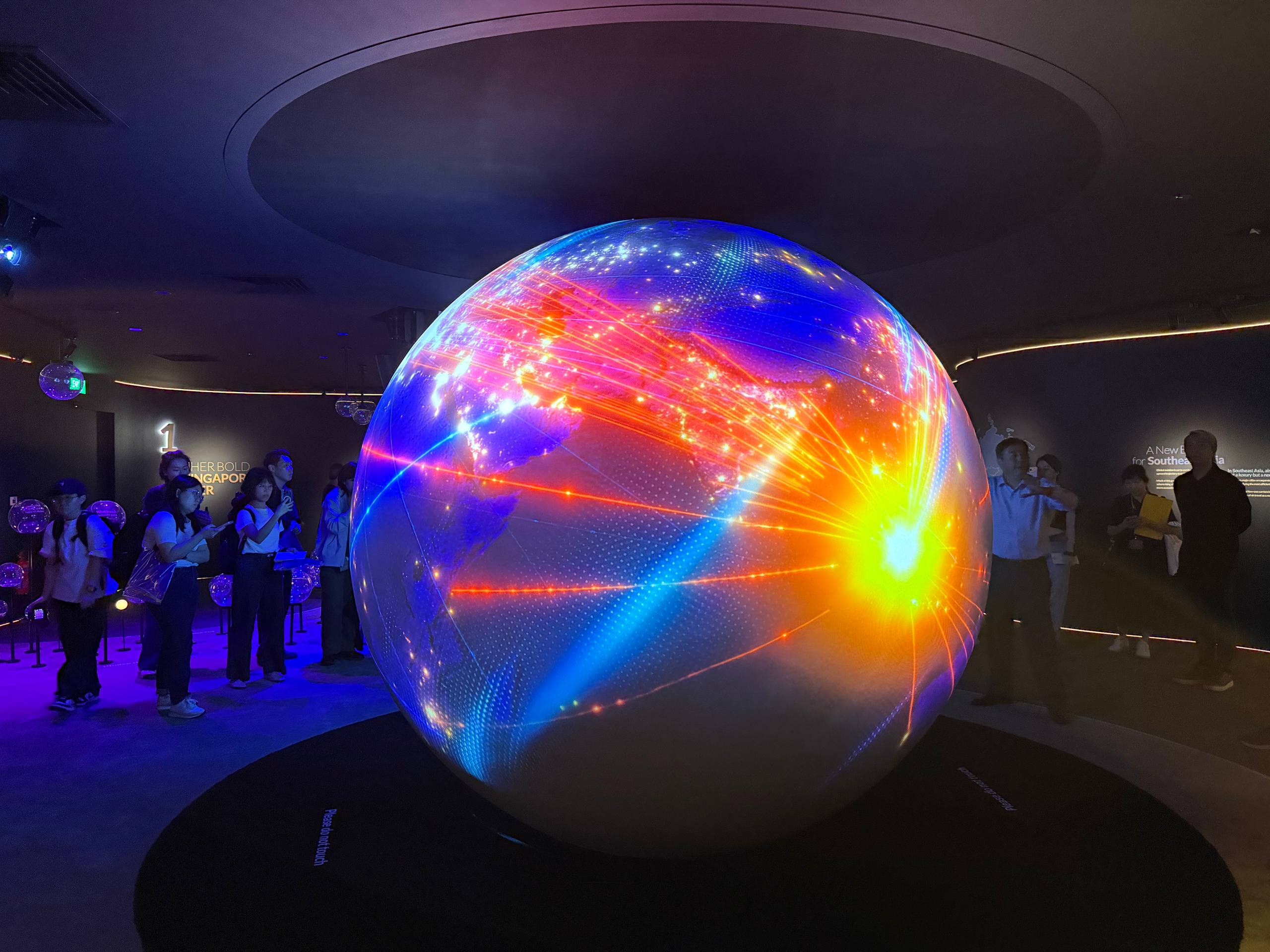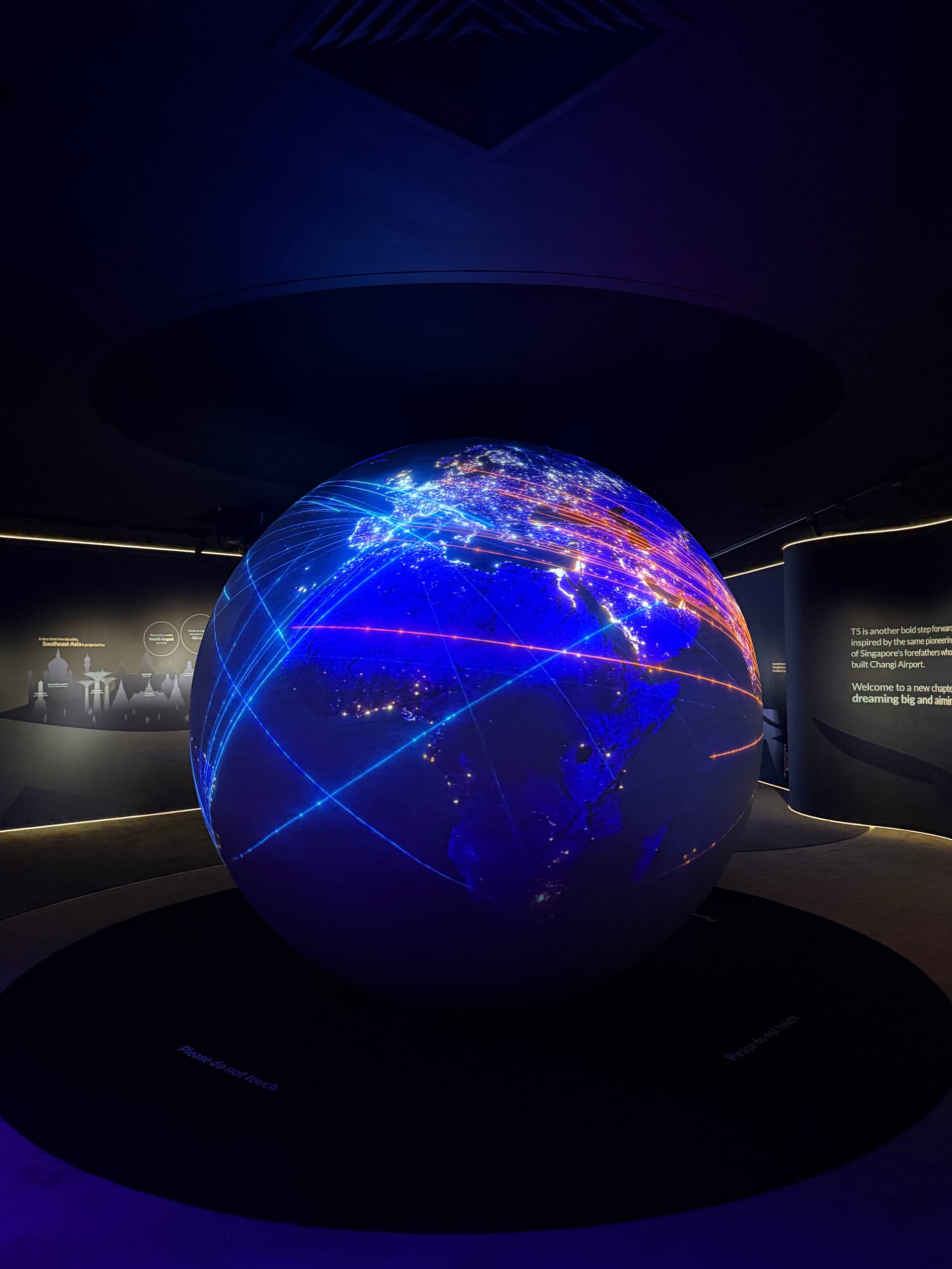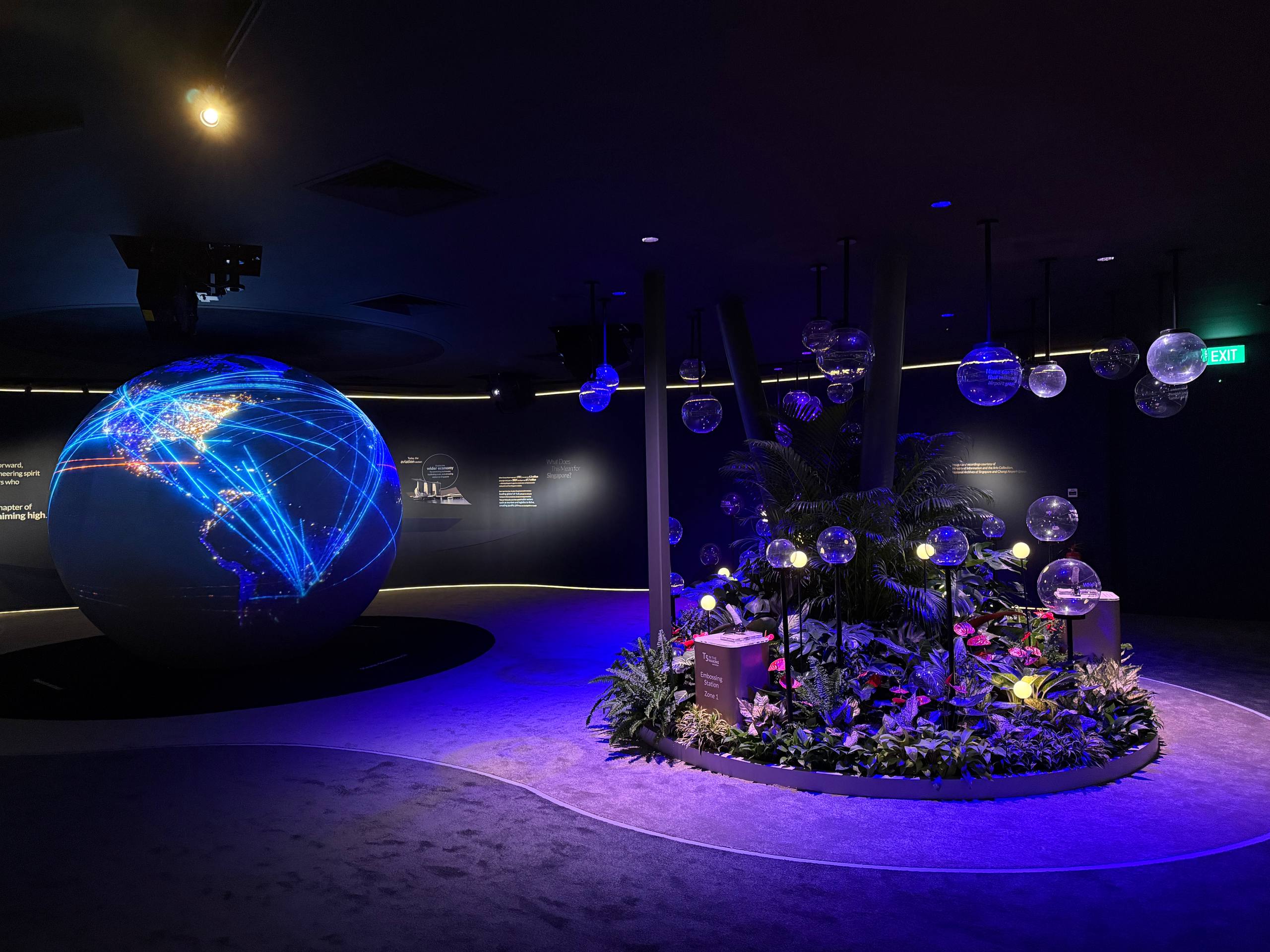 Taking centrestage at this zone is a giant 2.7-metre globe with 360-degree digital animations. These graphics tell the story of why another terminal is a necessary next step for Singapore, and how the new T5 will help Singapore further expand its status as a global air hub, and cope with the rising travel demands.