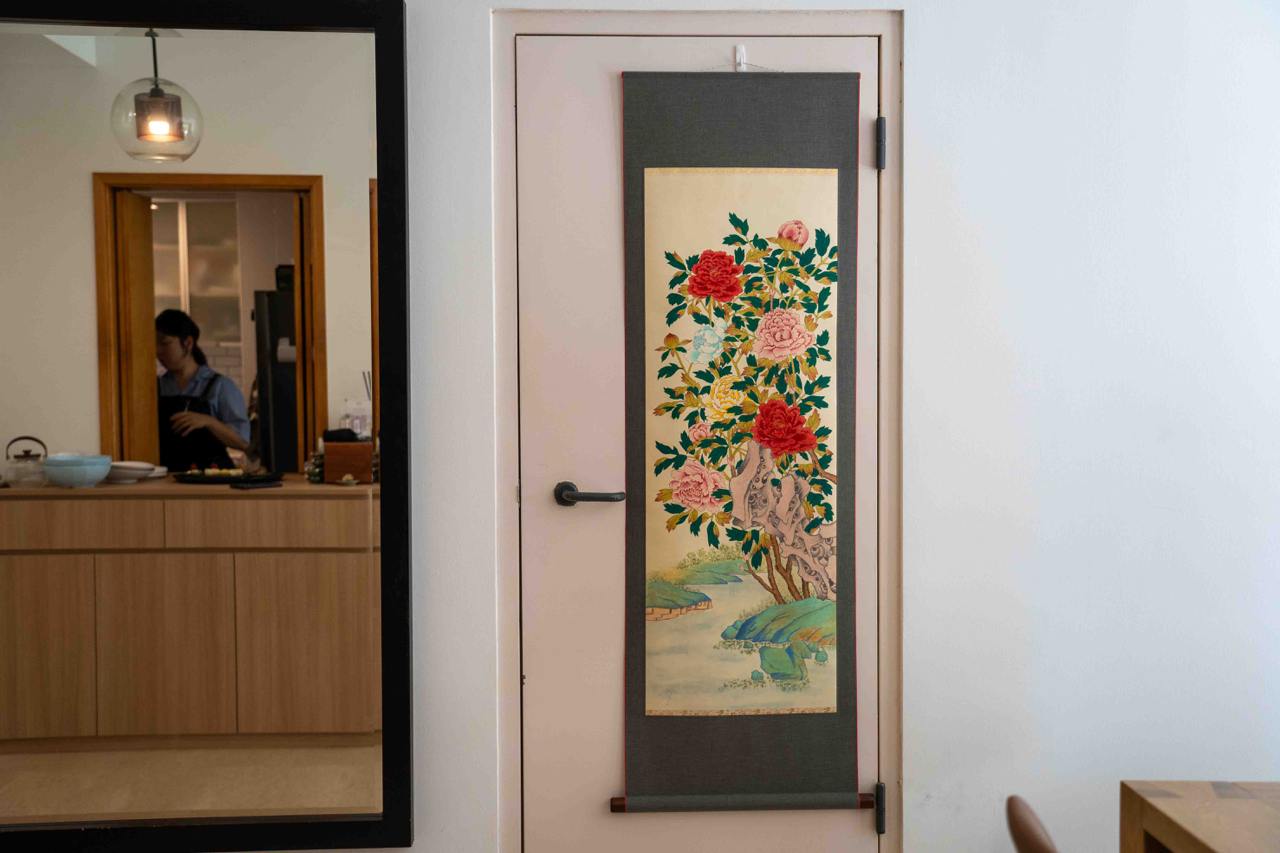 Tucked away in a condo apartment along Farrer Road is Bēok, a cosy private dining concept serving up contemporary yet unpretentious and authentic Korean cuisine. We also checked in with the team at Bēok if any license from the Singapore Food Agency (SFA) was required for them to operate, and it turns out that there isn’t! Aside from adhering to strict hygiene standards, we’re also told that all staff at Bēok have already attained the necessary Food Safety certifications required. As for the apartment, it’s tastefully decorated, with traditional Korean touches that make it feel more like home: like hand-painted floral artworks, ceramics imported from Icheon in Korea (famed for their ceramic crafts), embroidered Korean knots and “wealth bags” handmade by a Korean grandma, among others.