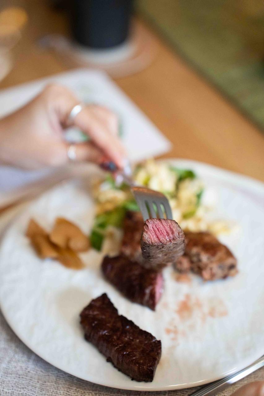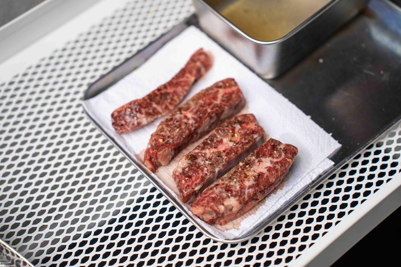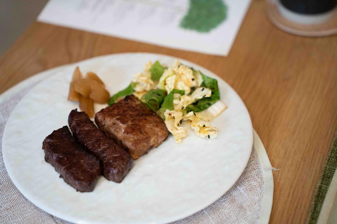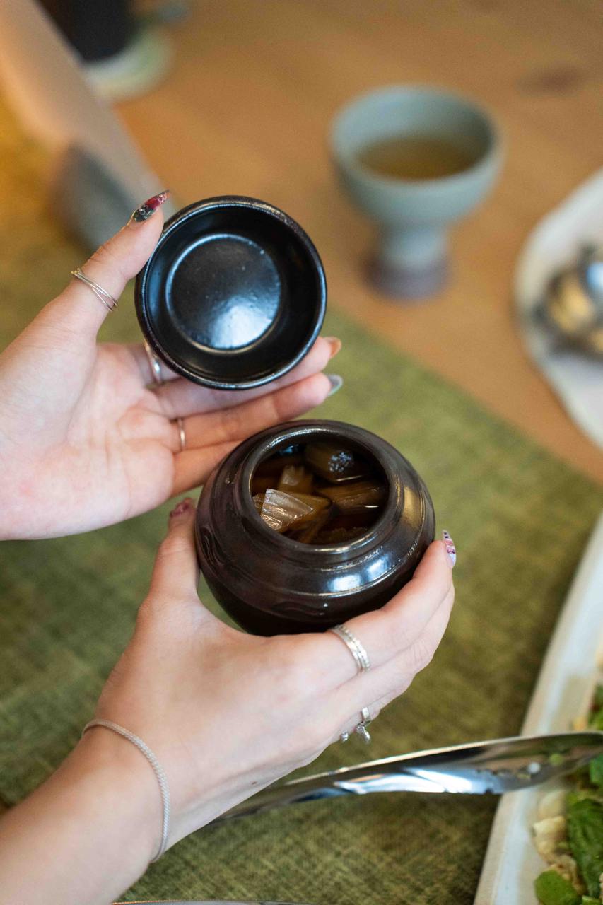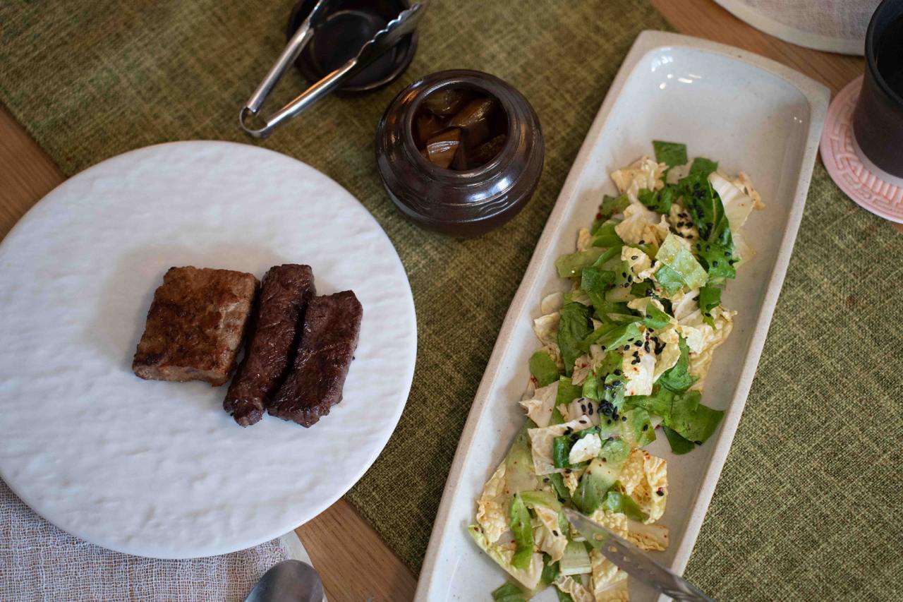 Our favourite course has got to be the meats; and this course is prepared on the balcony, grilled over binchotan for that amazing charcoal fire aroma. We had Sutbul Neobiani, which is hand-chopped Duroc Pork and Sutbul Anchang, or Tajima Wagyu Outside Skirt. The chopped pork patty was meaty and juicy, but the wagyu beef was truly the star of the show. We’re told that the wagyu has a marbling score of 7 or 8, and it’s cooked to the perfect medium well for maximum tenderness. The meats are paired with perilla oil salad and celery pickles, all of which are made in-house.