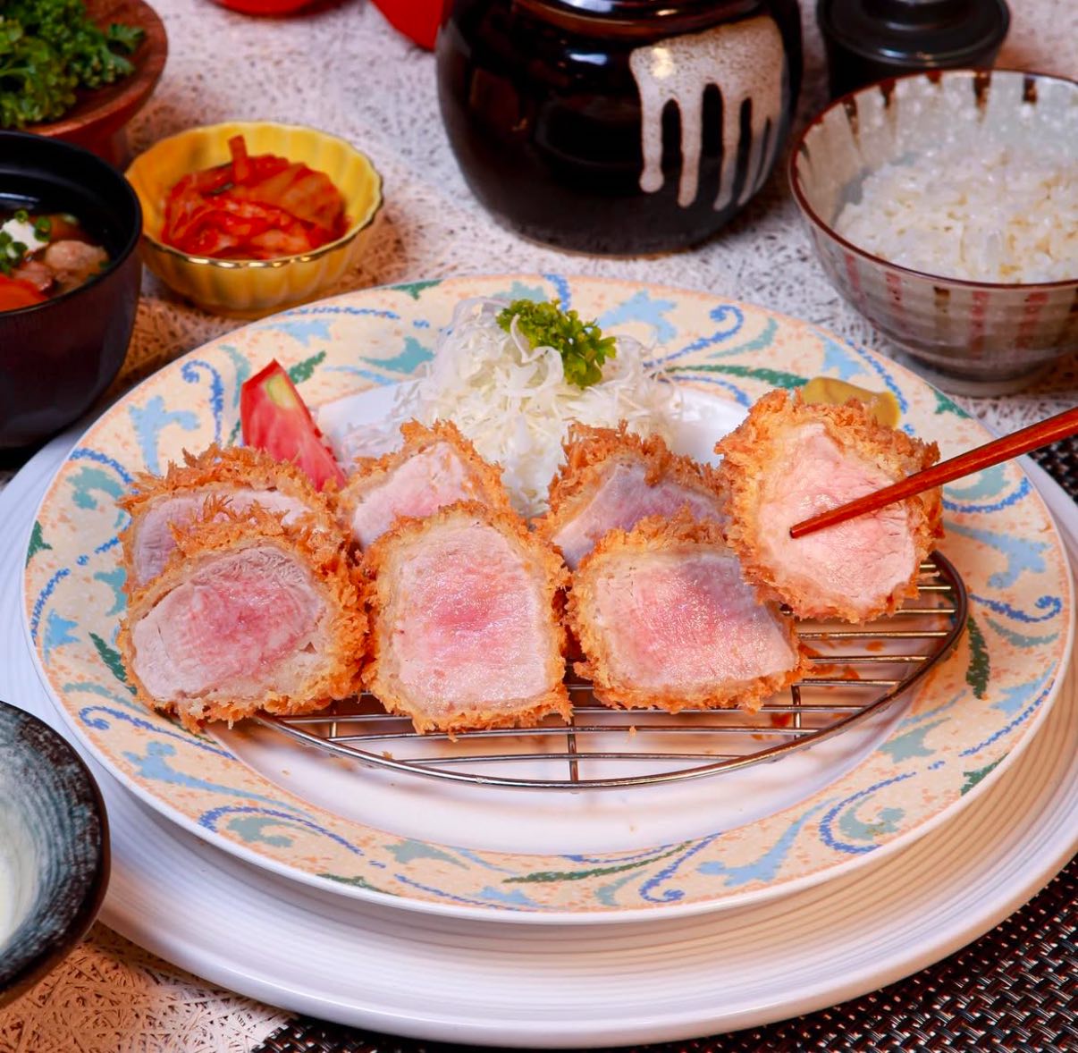 Known as the “#1 pork cutlet restaurant in Korea”, Tonshou’s unmatched popularity in Korea is evident in the way all 300 of their daily booking slots get snapped up within just 5 minutes. They’re famed for their signature pink-hued pork cutlets made with a unique 4-stage cooking process: low temperature cooking, high temperature cooking, resting and finally, charcoal grilling to achieve their iconic smoky aroma.