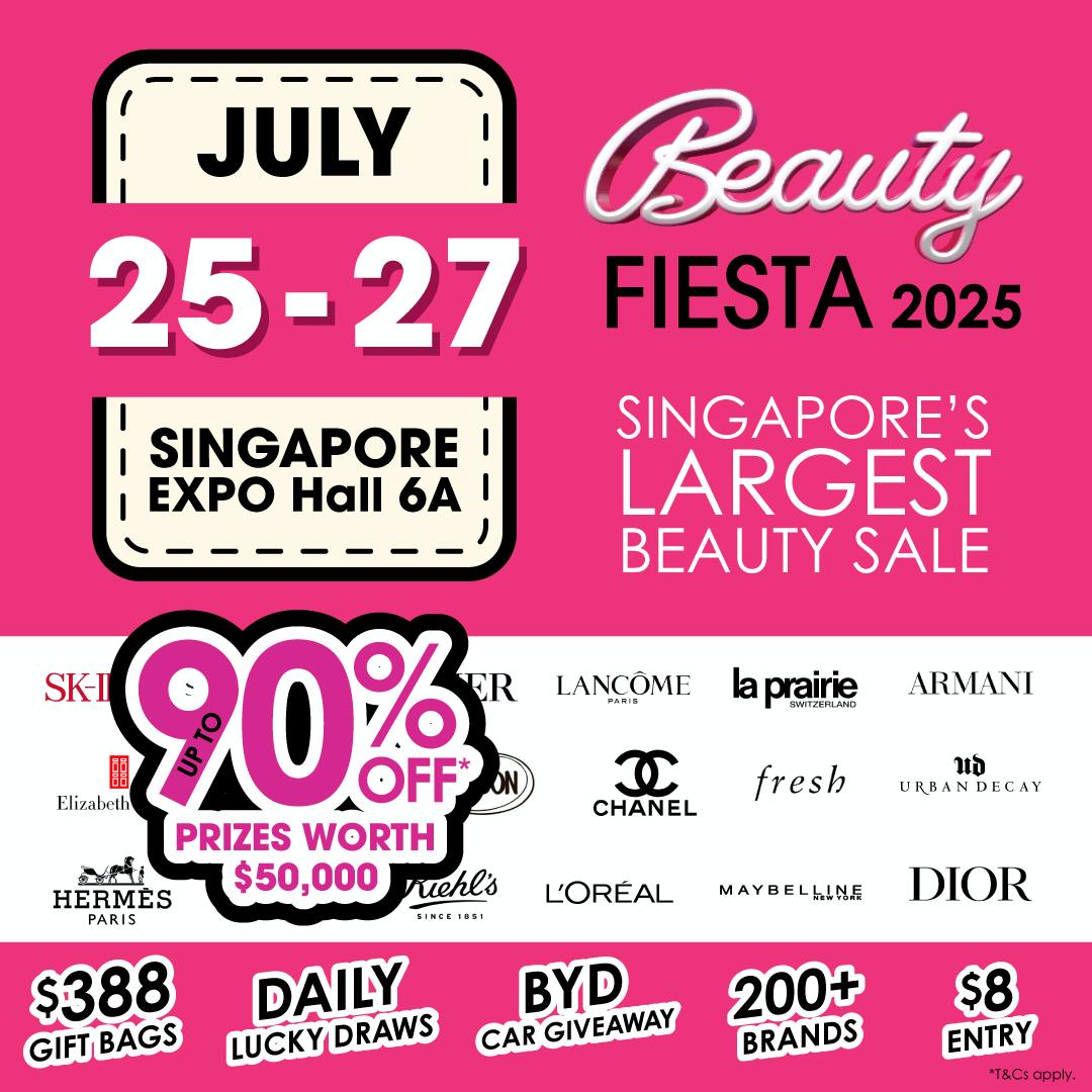 Beauty lovers, Singapore’s biggest beauty event is here: the popular Beauty Fiesta is coming back this July 2025, with over 200 brands and massive discounts of up to 90% off!