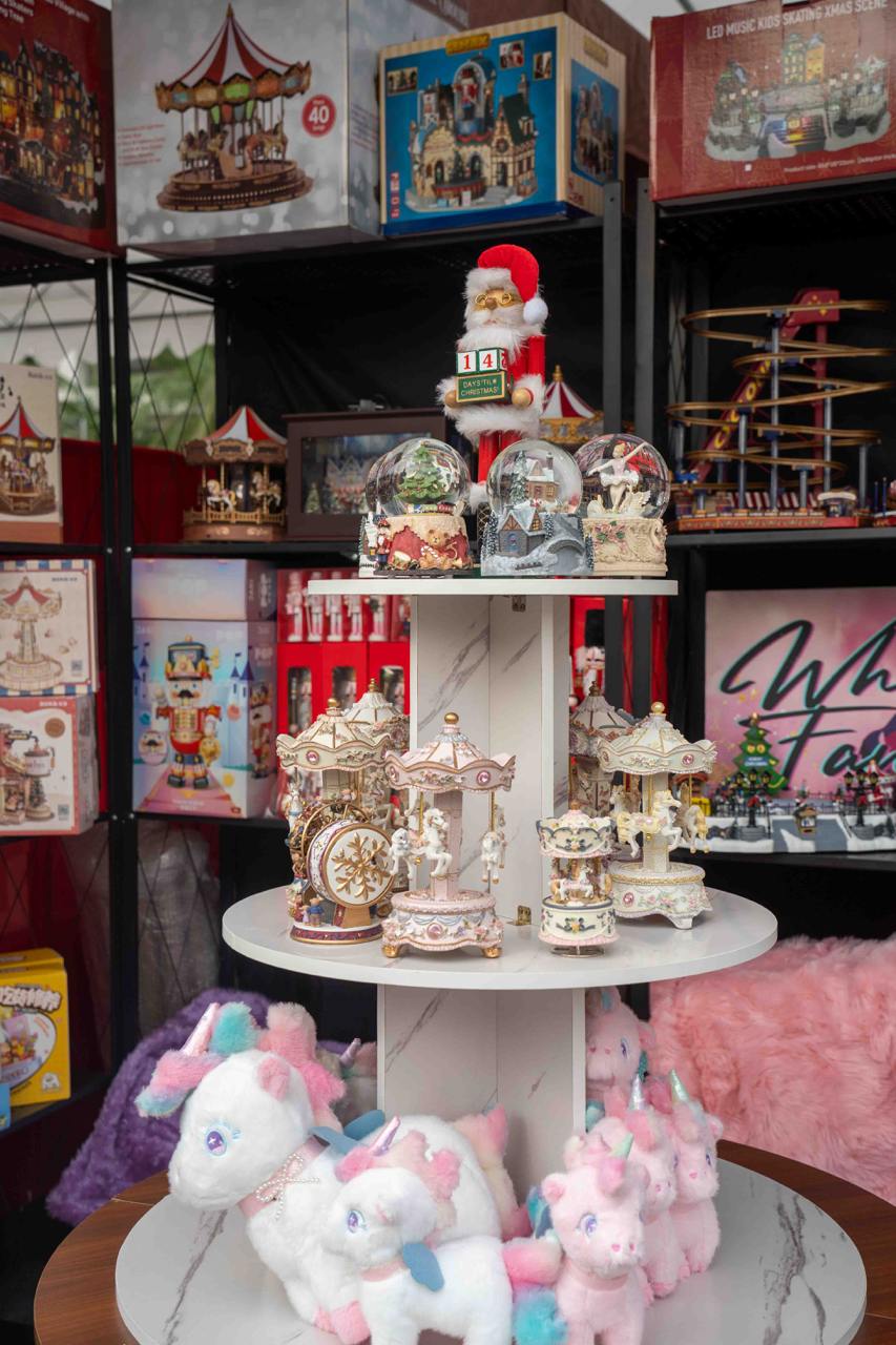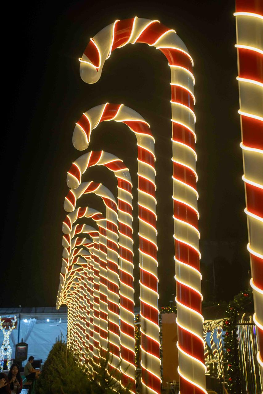Other photo-worthy spots include the larger-than-life illuminated candy candy cane lane, twinkling reindeer displays, sleds, Nutcracker soldiers, a mini fountain, light tunnel and lots of fairy lights all around. Come during the evening or night from around 7pm onwards to witness the space and decor in their best and most stunning form, all lit up to the nines and shining against the night sky.
