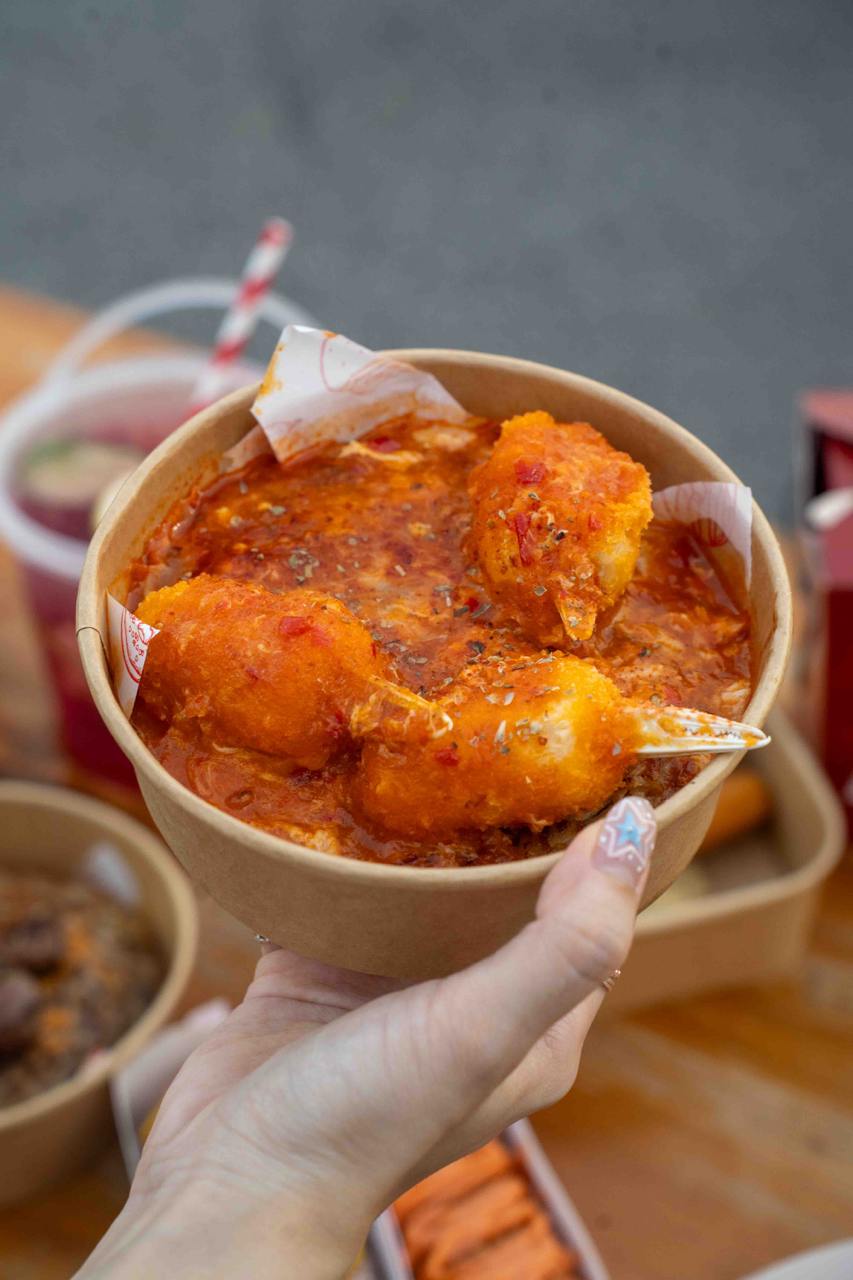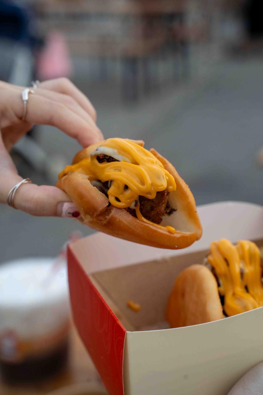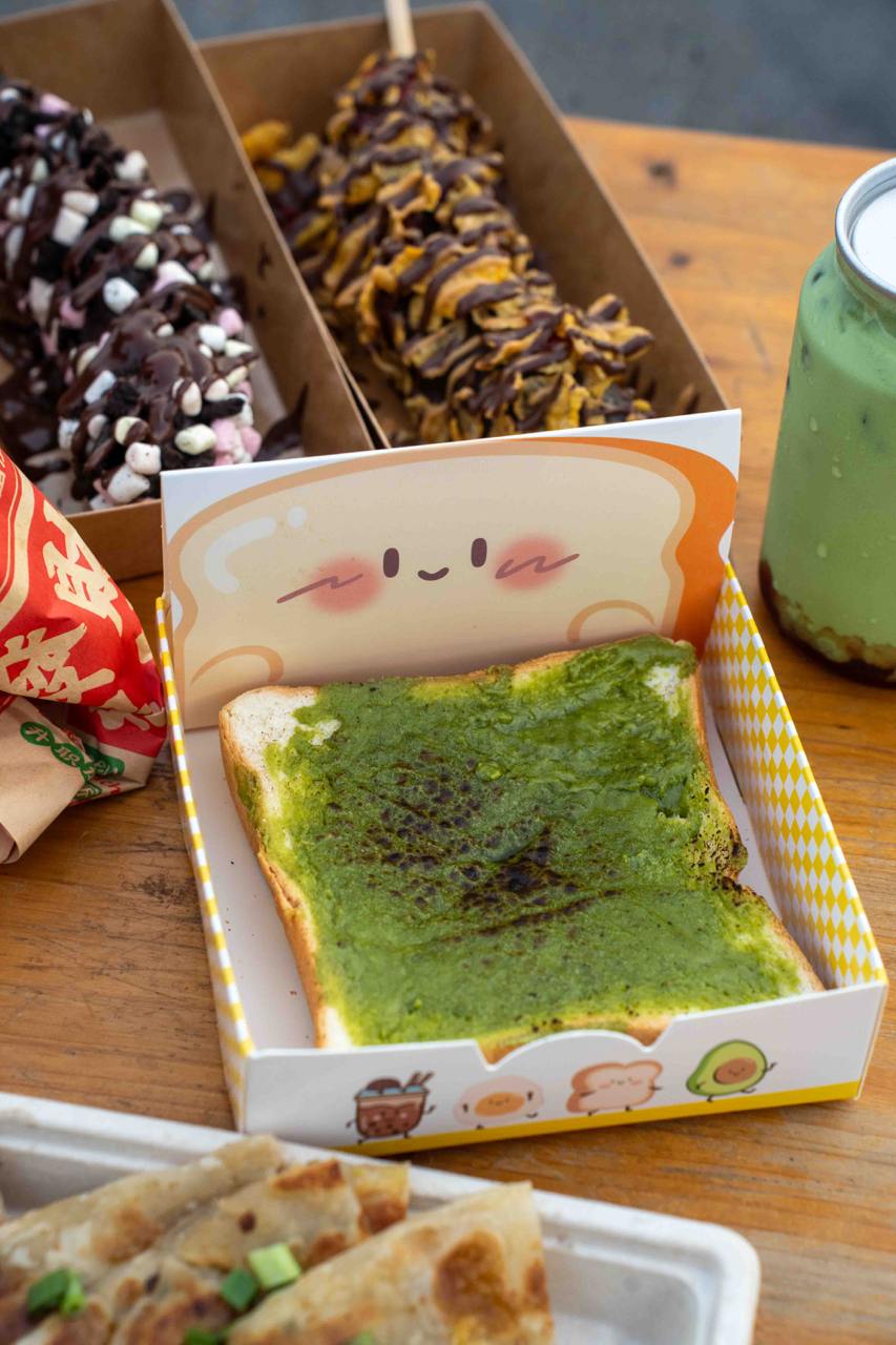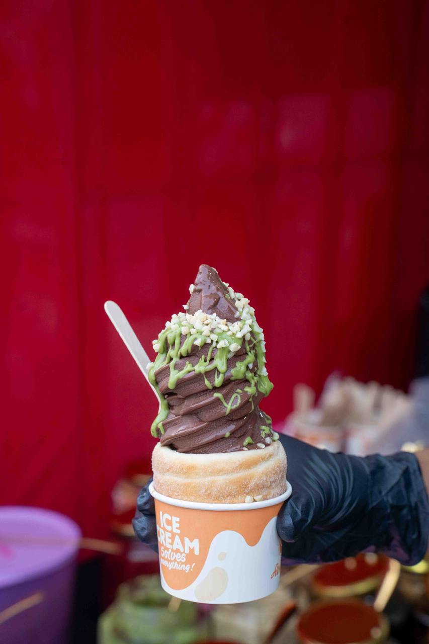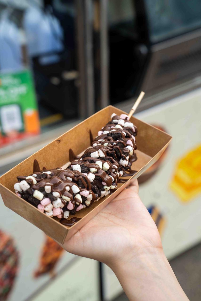 Food items start from as low as $1.50, but most of the food items we spotted range from $5 to $10 each. You’ll find the usual street eats like sushi tacos, jacket potatoes, grilled snacks, drink buckets, sliders, corn dogs, bubble tea and more; along with a couple more unique and festive-inspired items like butterbeer, “glowing” cotton candy, fresh seafood and buldak fried rice. Dessert lovers will enjoy the DIY Chocolate Dip Banana ($10), which is a whole frozen banana dipped in chocolate, finished with your choice of sauce and toppings. The Kunafa Pistachio Kurtos Ice Cream ($12.90), is also one of the more popular options, featuring a freshly-baked chimney cake roll stuffed with ice cream and more toppings.