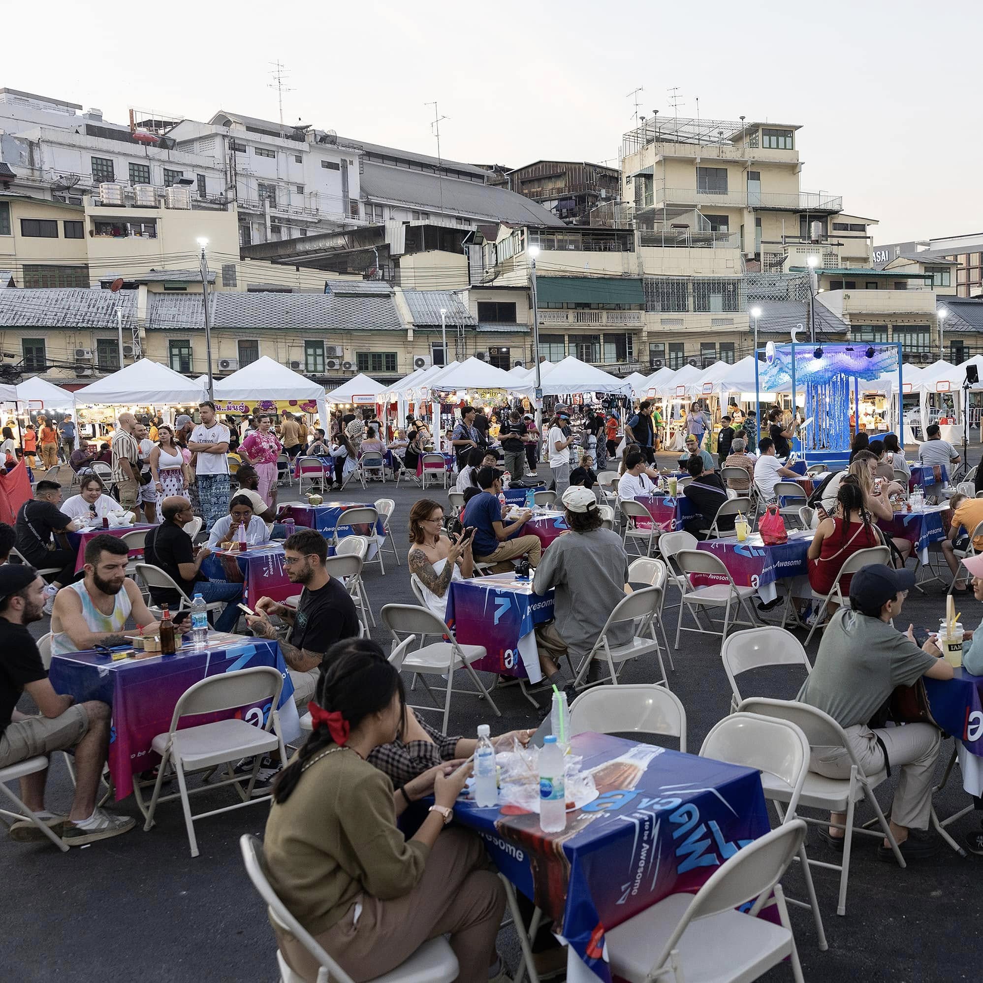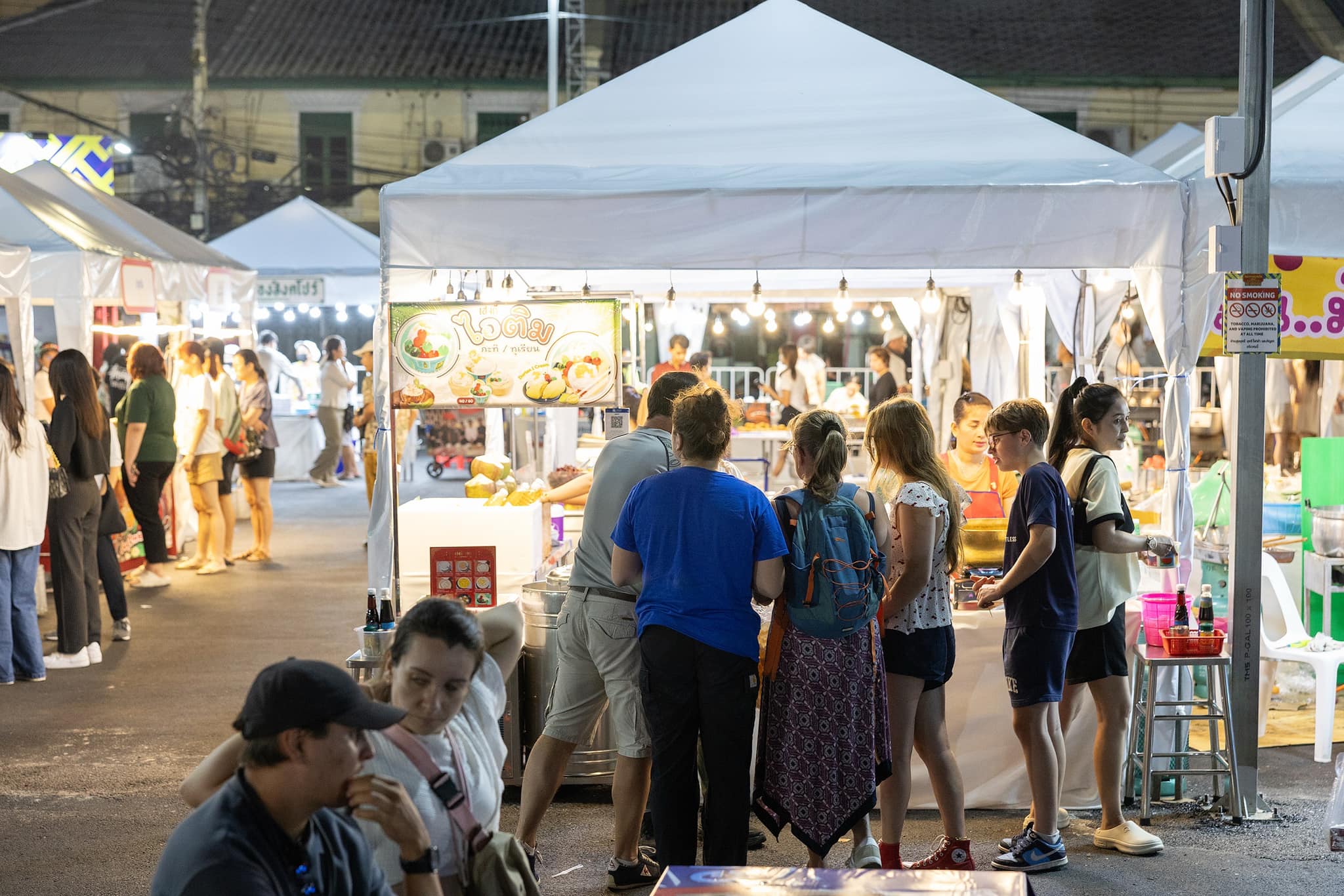 Located about a 10 minutes drive from the city centre near the bustling Yaowarat Road is Chaloem Buri: a unique night market with vibrant and retro-esque elements and Chinatown vibes. The market has about 200-300 stalls in all, eclectic neon signages, plenty of al fresco seating and live music performances too.