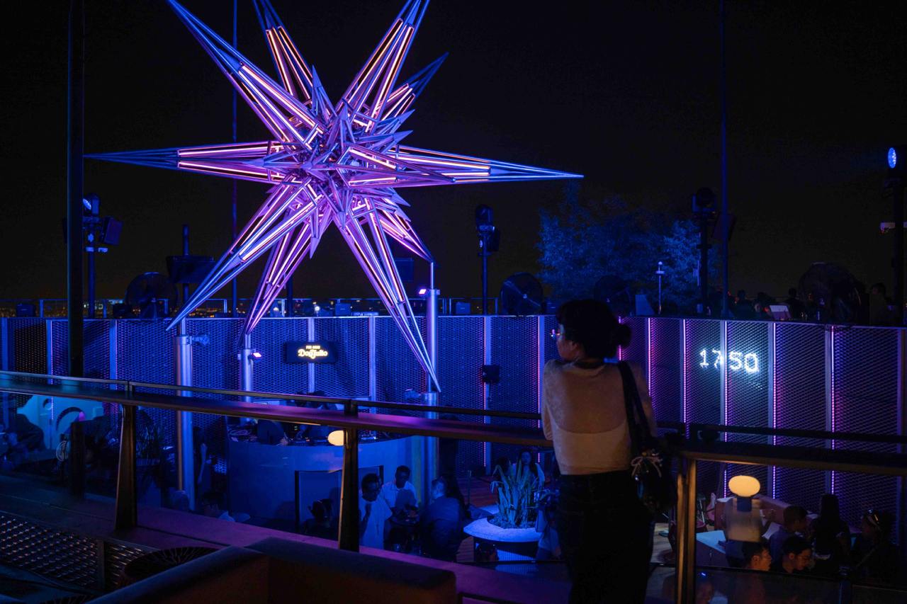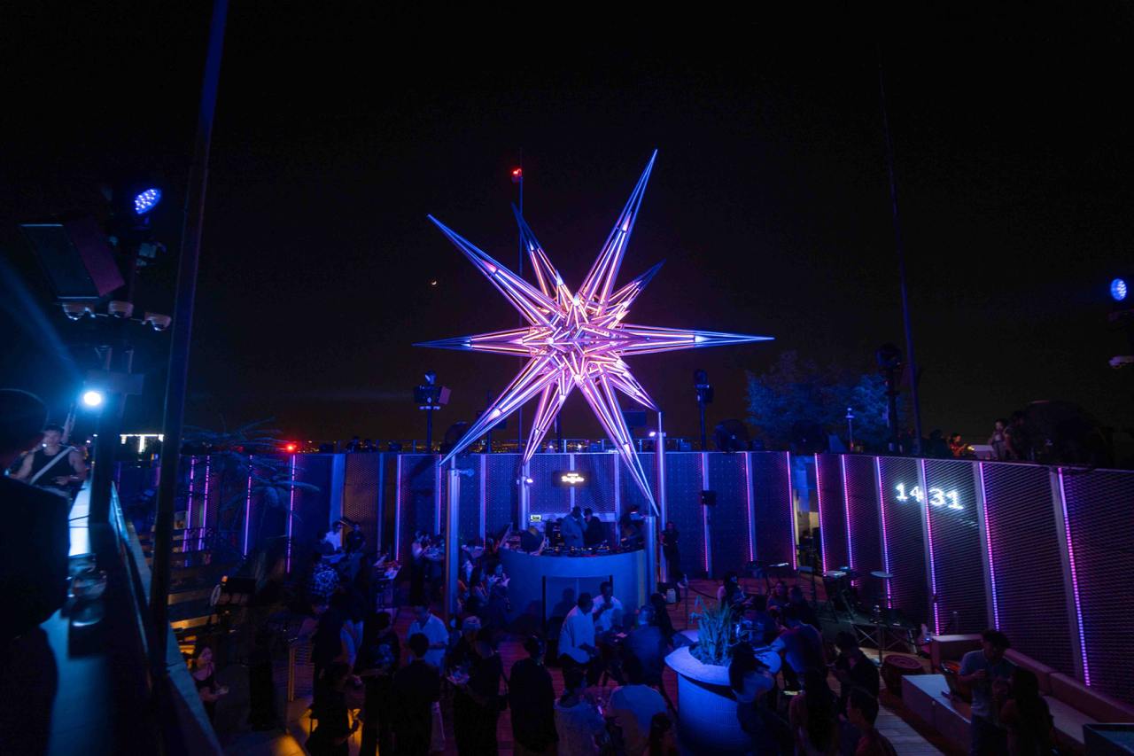 But what makes NOVA truly nova is the striking ASTRA installation as the focal point of the entire space. ASTRA is a giant multi-faceted star-shaped steel structure that glows and illuminates the space, making for some gorgeous Instagrammable shots too. The star structure pulsates with different coloured lights throughout the night, and is meant to resemble the supernova phenomenon—the explosion of a large star to create a brilliant light that’s a billion times brighter than the sun.