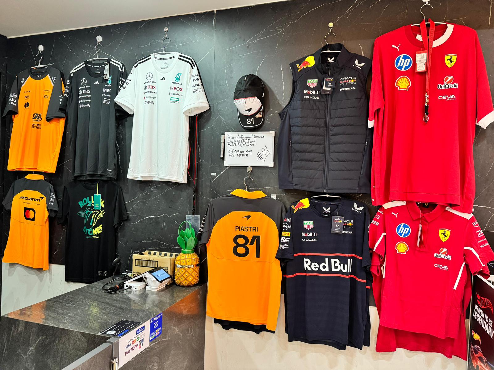You’ll also be able to shop F1 team goods like shirts, jerseys and caps from your favourite teams like McLaren, Scuderia Ferrari and Red Bull. Prices for items start from $29.90 and can go up to $1600 each. Some items you’ll find in-store include: