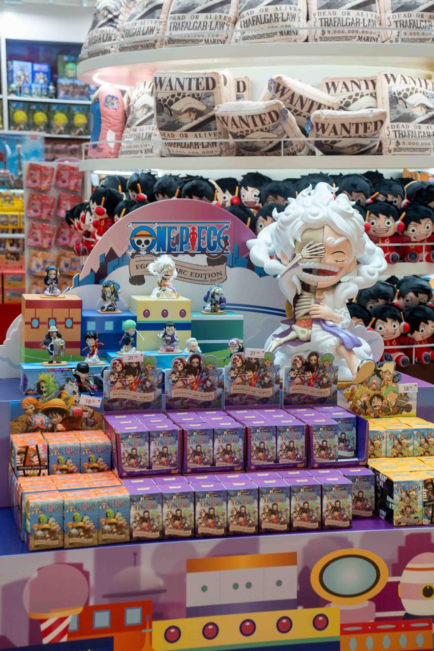 Popular items you can find in-store include blind boxes (including a mega-sized Luffy Gear 5 figurine that you can pre-order for $1280), plushies and cushions, card games, 3D puzzles, drinkware, footwear, bags, hats, keychains, stationery, stickers and more.