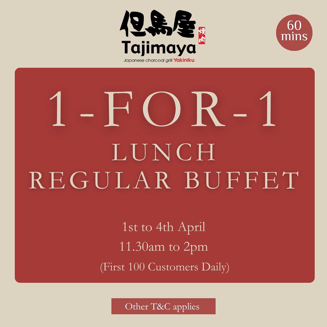 The buffet is limited to dine-ins customers only, for the first 100 walk-in diners daily; so run, don’t walk bestie! The 1-for-1 buffet is applicable for lunch hours, from 11.30am to 2pm, and diners must order the $4.90 free flow drink (free flow green tea/soft drinks) option to enjoy the promotion.