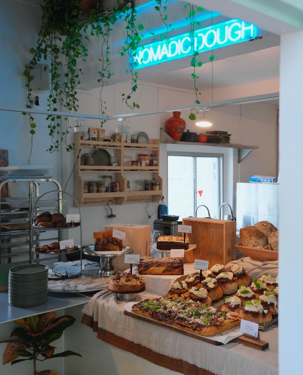 There’s indoor and outdoor seats available, and an open kitchen where you can watch all the action too. The bakes available from the display switch up daily, but some items you might see include Hazelnut Cake with Poached Pears, Fluffy Babka, Pistachio Praline Cinnamon Rolls, Porridge Sourdough, Brown Butter Cookies and more.