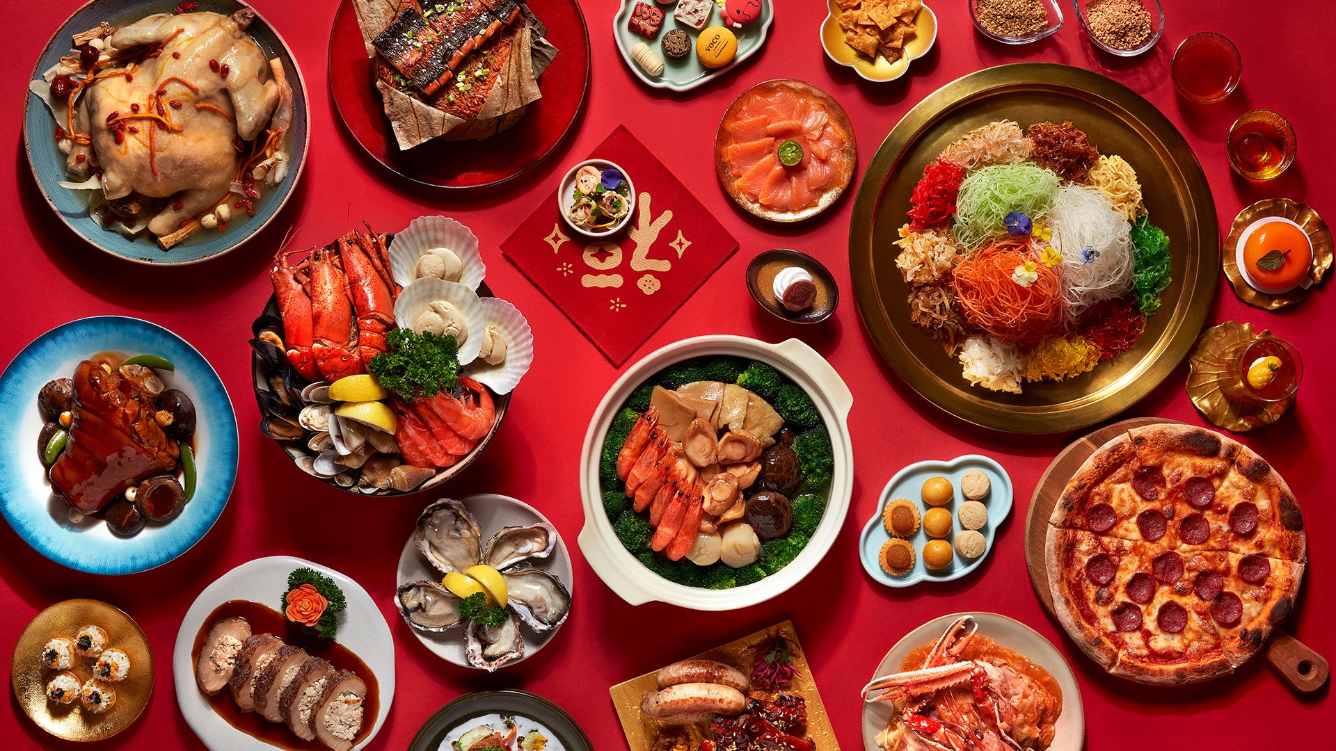 Look forward to festive options as well, including Chinese wine chicken, baby abalone fried rice, drunken herbal prawns, ginger and rice wine clams, herbal chicken with cordyceps flower soup, fish maw crab meat soup and more. The buffet even includes DIY Prosperity Yusheng with fresh salmon sashimi! The 50% off promotion is valid with payment by OCBC credit/debit cards.