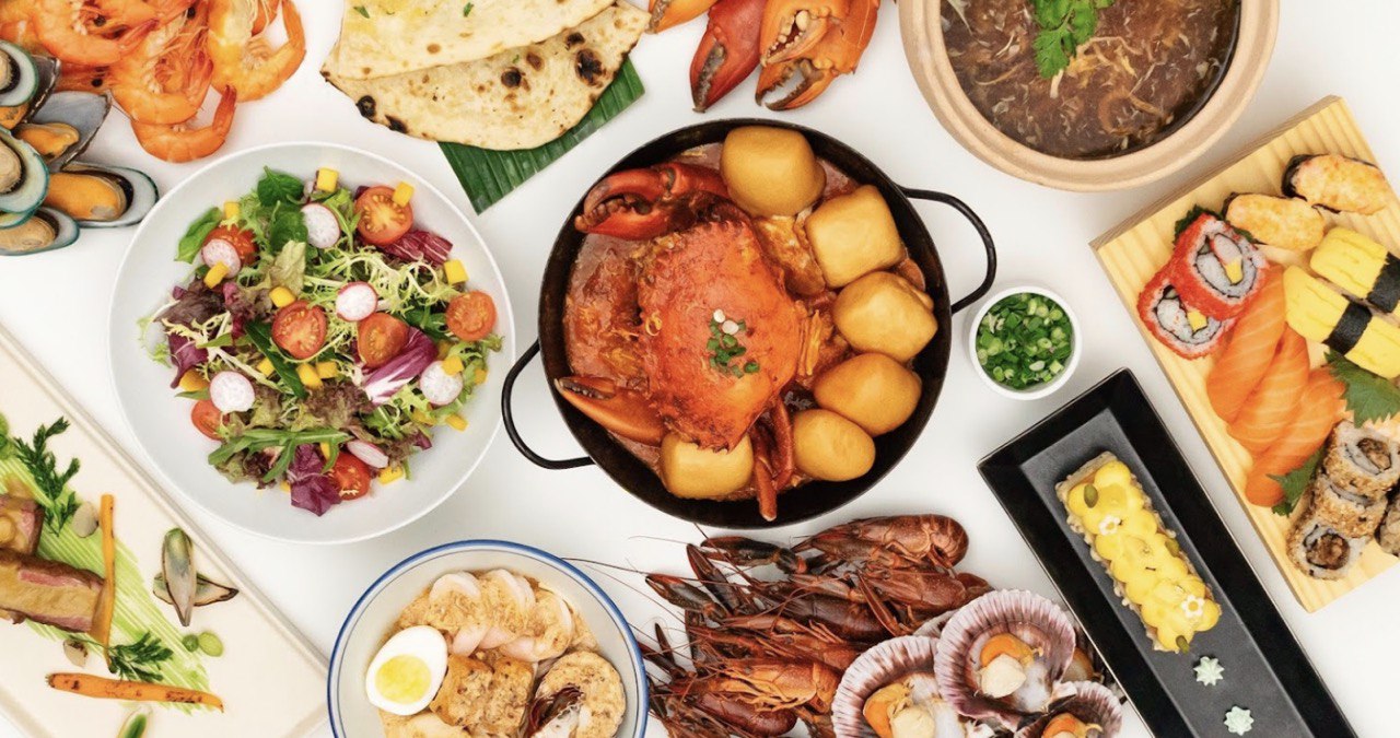Seafood highlights include the likes of poached snow crabs, jellyfish, swordfish ceviche and more, along with other charcoal grilled meat options, salads, oven-baked pizzas, noodles, desserts and more! Buffet prices start at $68/pax; for the full menu and prices, see here.