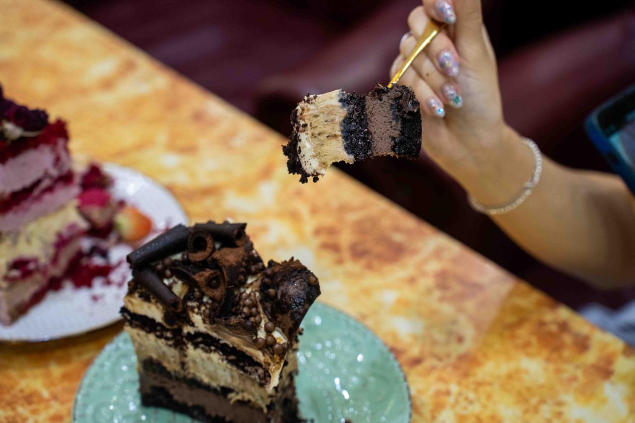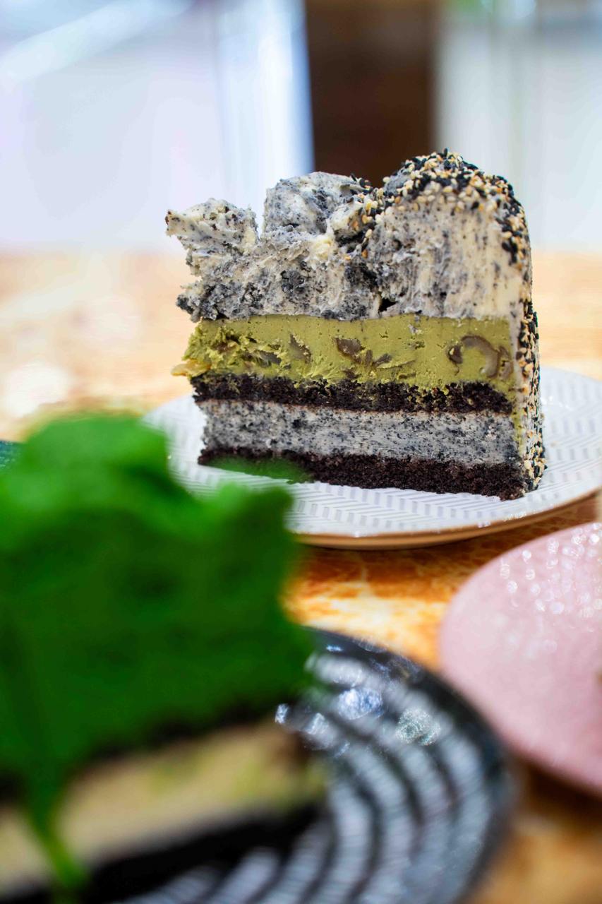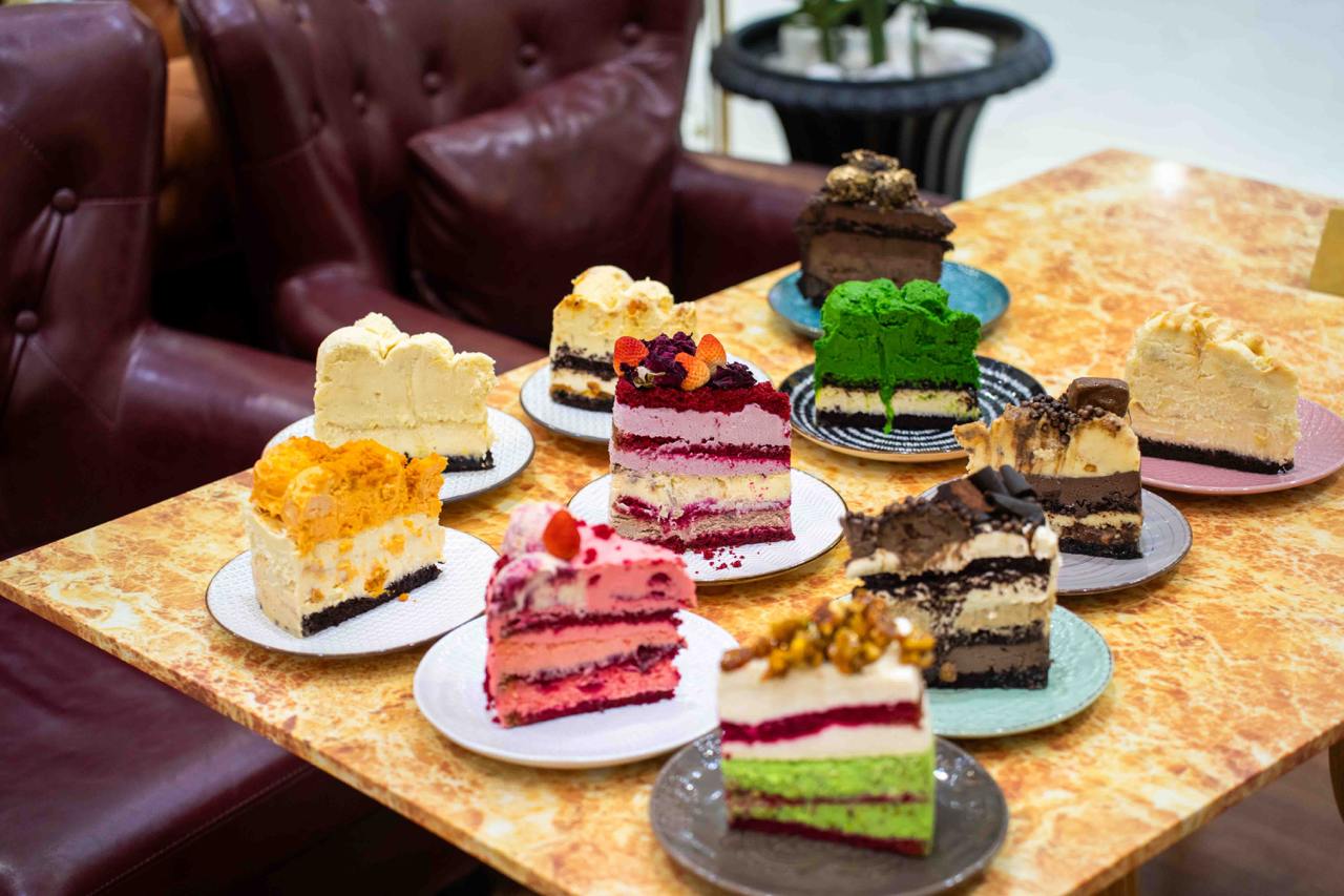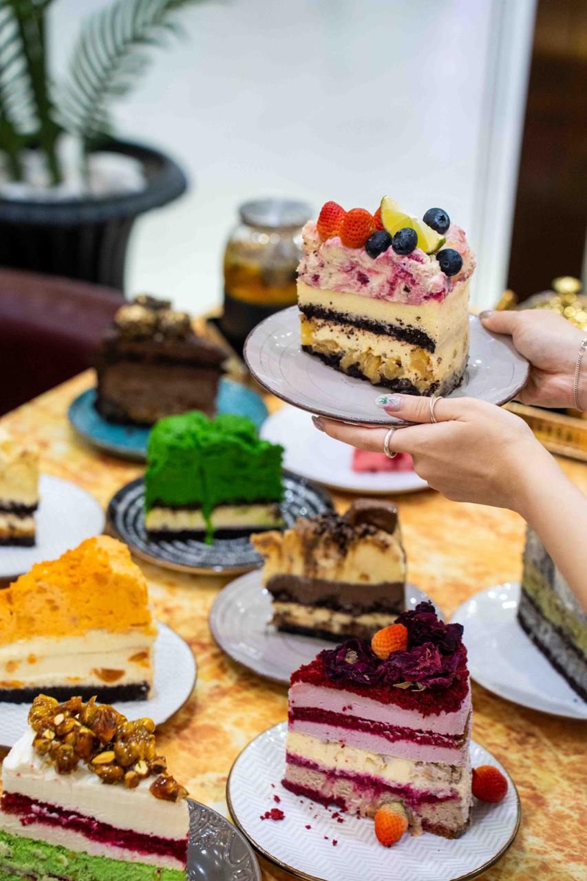 The cakes are colourful, chunky and mega-sized, each measuring at least 6 inches in height. Each slice is already super tall, and some of them are even topped with extra toppings like fresh fruits, cream and fillings; making them even bigger and nearly overflowing. The cakes are so thick that we couldn’t even cut through the whole cake with a fork at one go! Prices per slice start from RM36 (~$10 SGD) to RM78 (~$23 SGD), with most flavours ranging between RM40 to RM50. Some signature flavours you could try include the Musang King Deluxe, Berries Heaven or Unholy Hennessy.