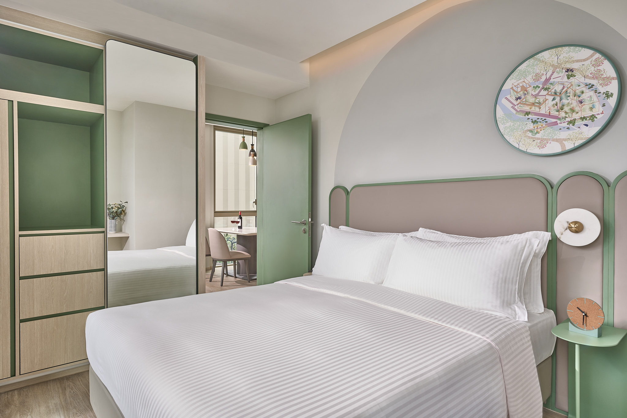 Enjoy amenities like a 25-metre outdoor infinity pool overlooking scenic views of the city, or have an outdoor BBQ affair by the poolside. There’s also co-working spaces, a self-service launderette, meeting rooms and a fully-equipped 24-hour fitness corner for guests to enjoy too. The chic property has some 250 rooms, with options like studios, lofts and one-bedroom apartments.