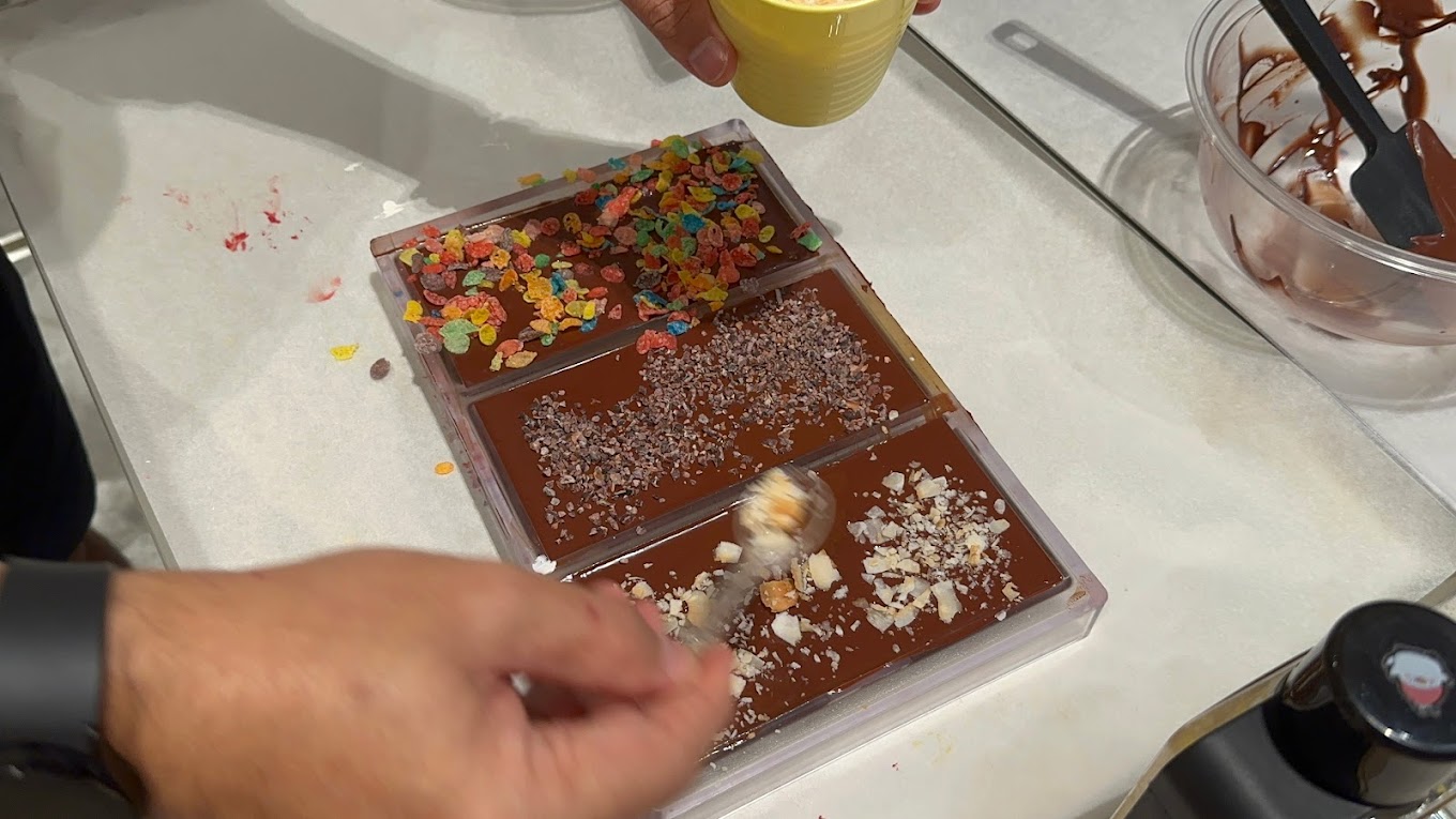 DIY CHOCOLATE BARS FROM FRESH CHOCOLATE TAPS WITH OVER 15 UNLIMITED TOPPINGS LIKE POPCORN, POTATO CHIPS, EDIBLE FLOWERS & POPPING CANDY!