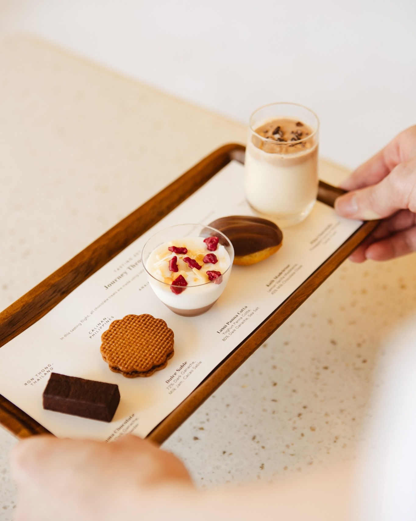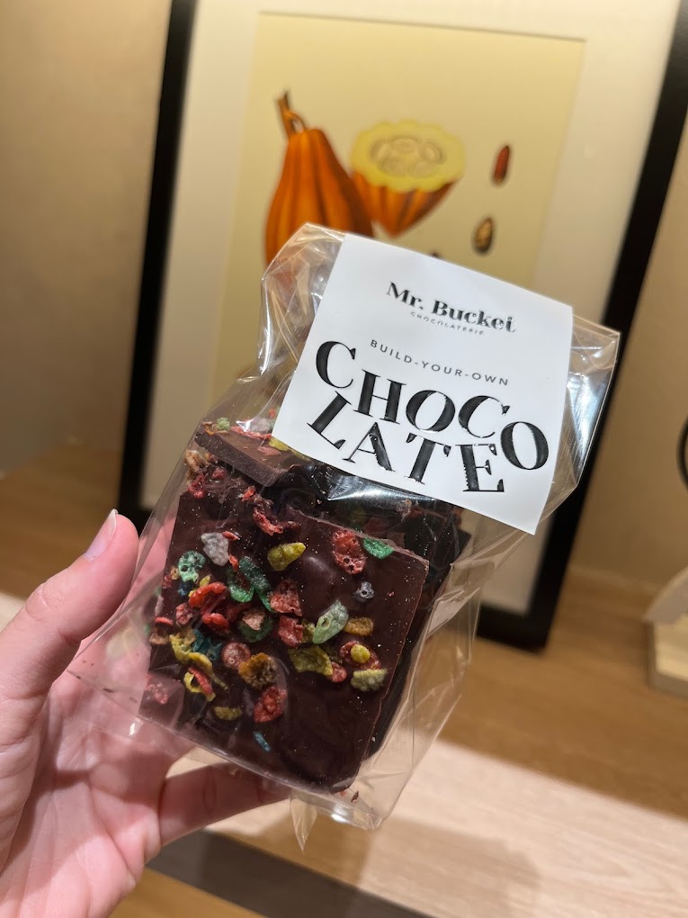 Once you’ve piled on all your desired toppings, the chocolate will need to set in the fridge for about 40 minutes. While you’re waiting, feel free to look around the chocolate “factory” and shop for some artisanal chocolate treats or bon bons, or sit and grab a bite/drink from their in-house café!