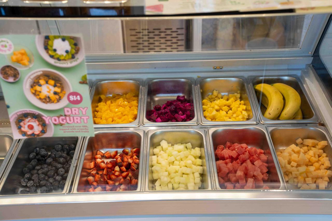 Aside from dry yogurt bowls, they’ve also got the viral sticky yogurt buckets (from $7) with build-your-own options where you can pick any of the fresh fruits or toppings you want; along with fresh fruit smoothies made with yogurt, waffles, coffee and more.