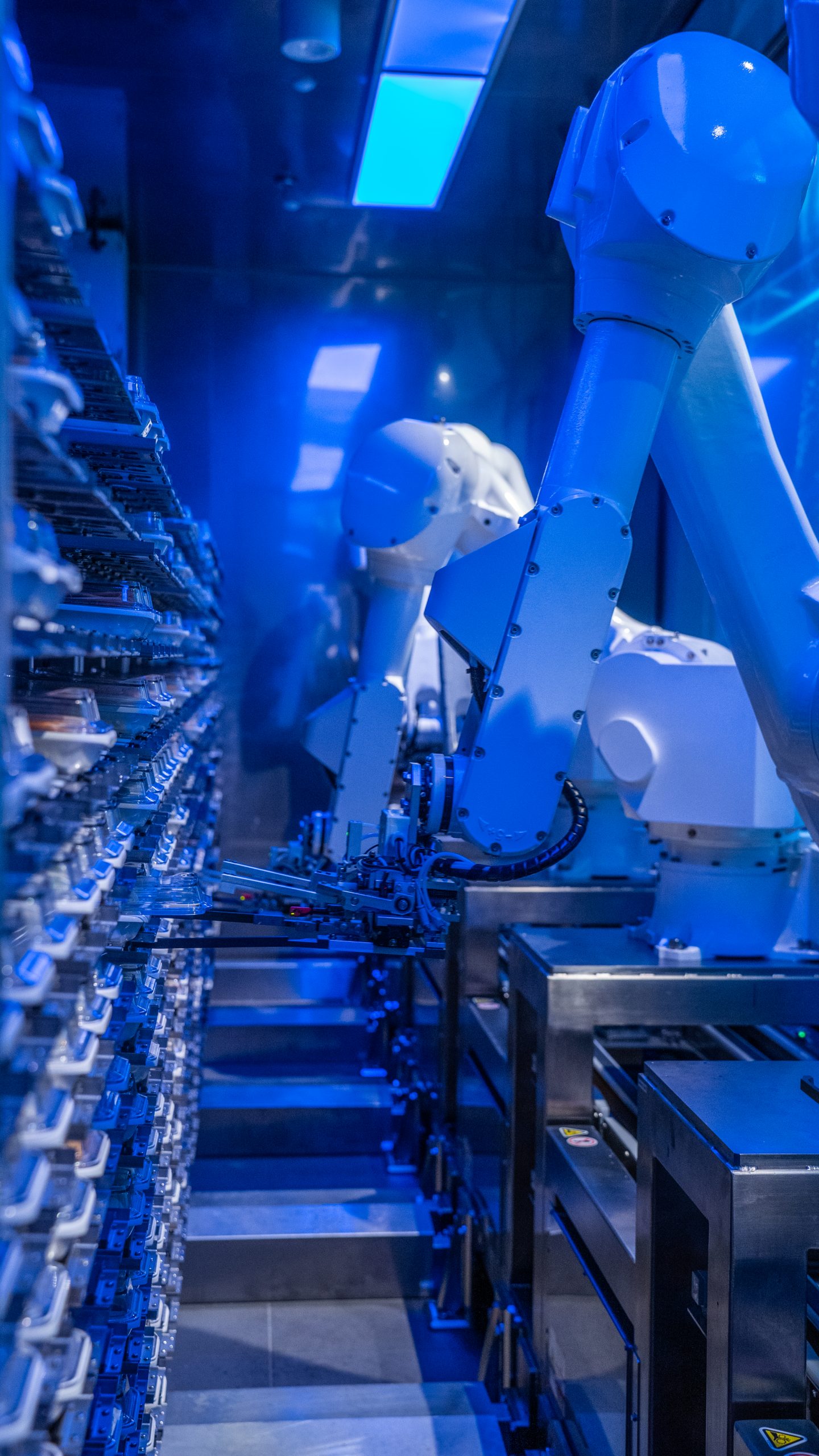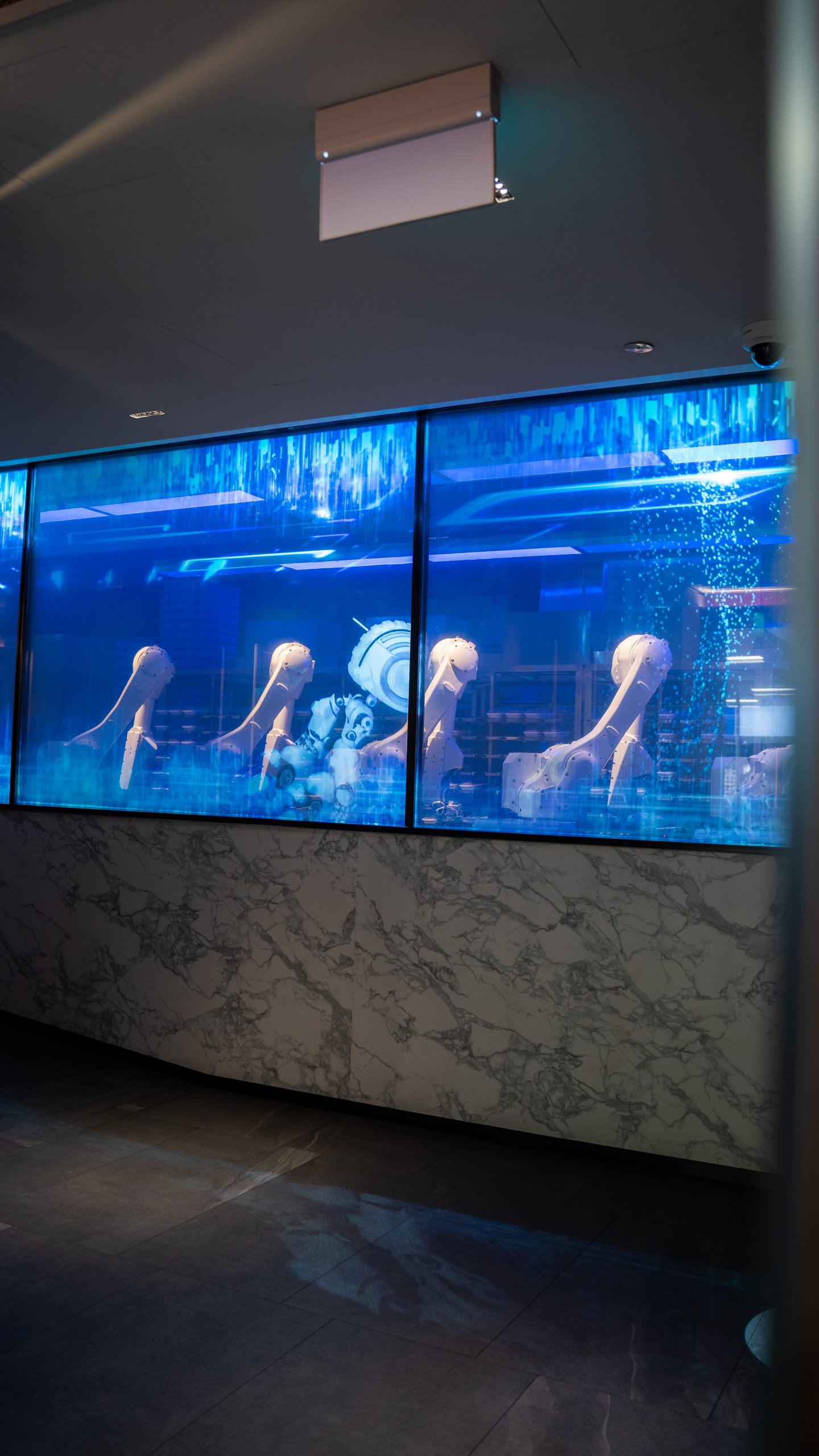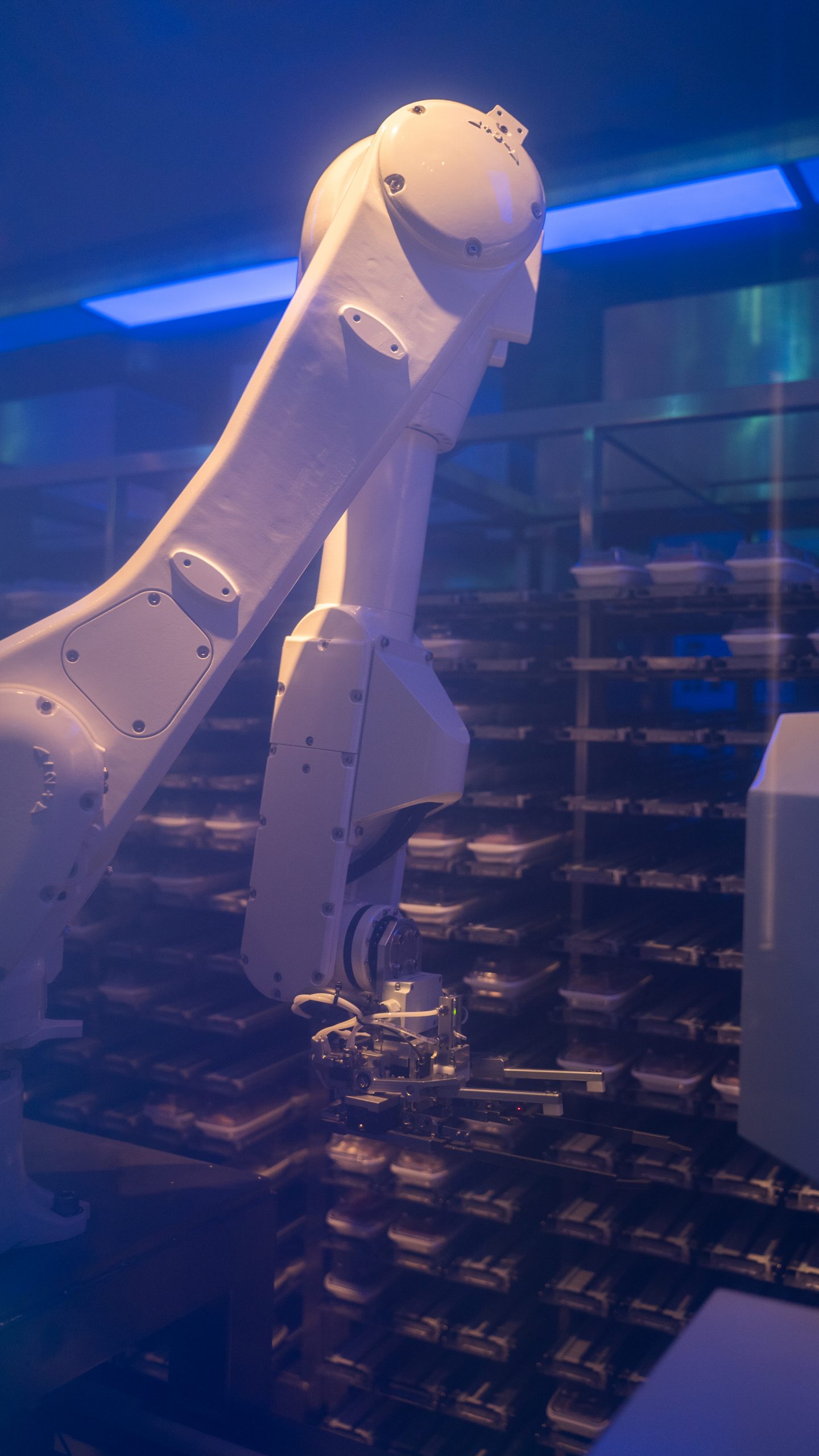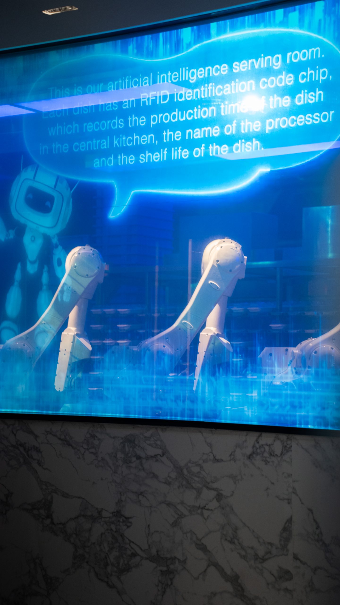 When you first step into the restaurant, you’ll be greeted by a semi-transparent glass panel where you can see the high-tech robot arms at work. Once you’ve made an order via iPad, the order is sent to the Intelligent Food Room where the robot arms are responsible for automatically selecting the dishes and sending them to the sorting area for quality checks and final garnishes.