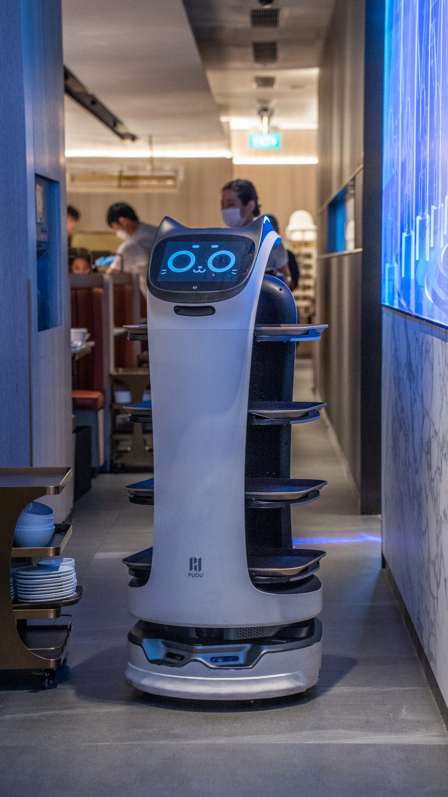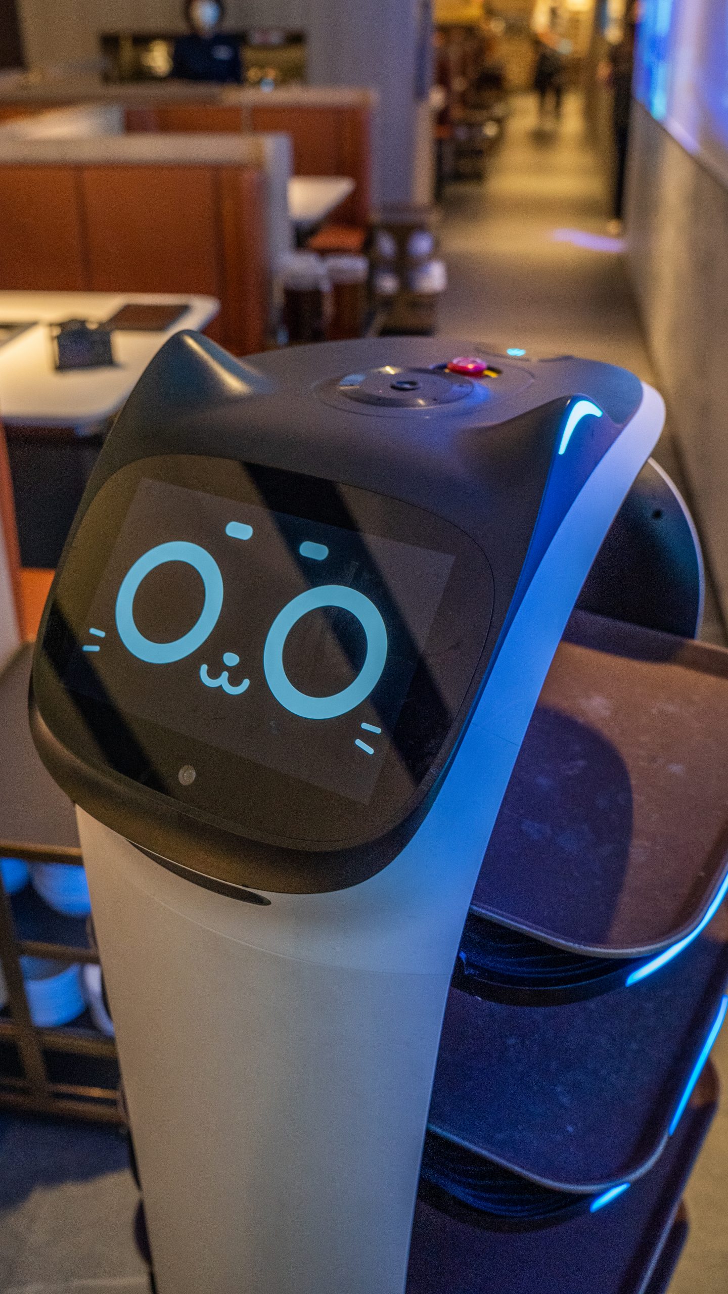 Once that’s done, the food is placed on the roving robot waiters and off they go to their respective tables! Make sure to be camera-ready once the talking robot waiter arrives at your table as the robot waiter also features a friendly cat face complete with cat ears and adorable facial expressions!