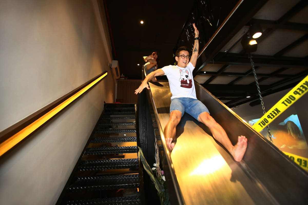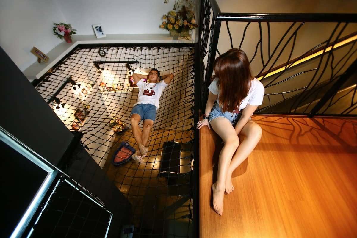 As we move to the second floor of this apartment, you will see a slide that brings you straight to the first floor, and a spider web suspension where you can play around!