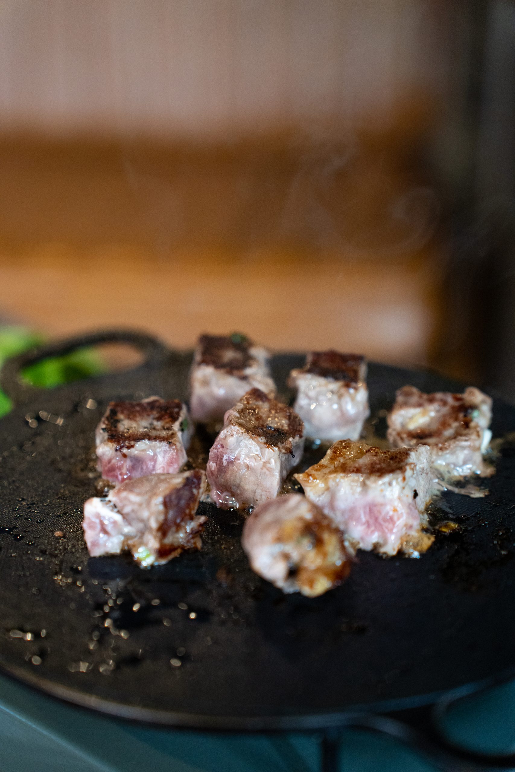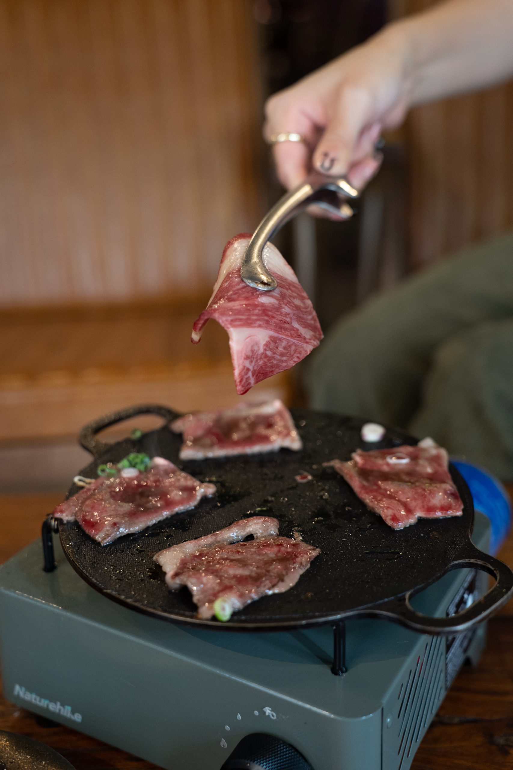 Seafood lovers can also look forward to fresh Hyogo Oysters (from $11.80), Salmon Sashimi ($11.80), Hamachi Kama ($9.80), Alaskan Black Cod ($28.80), Squid with Miso ($4.80), Tiger Prawns ($5.80) and Salmon Skin ($4.80), just to name a couple. It’s also useful to note that the cooking pans used at Nennen are smaller than usual, just slightly bigger than two palm sizes. We’re told this is an intentional choice by the owners; and it’s so you won’t be able to cook as much at one go, thus preventing overcooking the meats so you can enjoy them the way they’re meant to taste. If you’re dining with a large group, you might also want to request for an additional cooking pan to minimise waiting time.