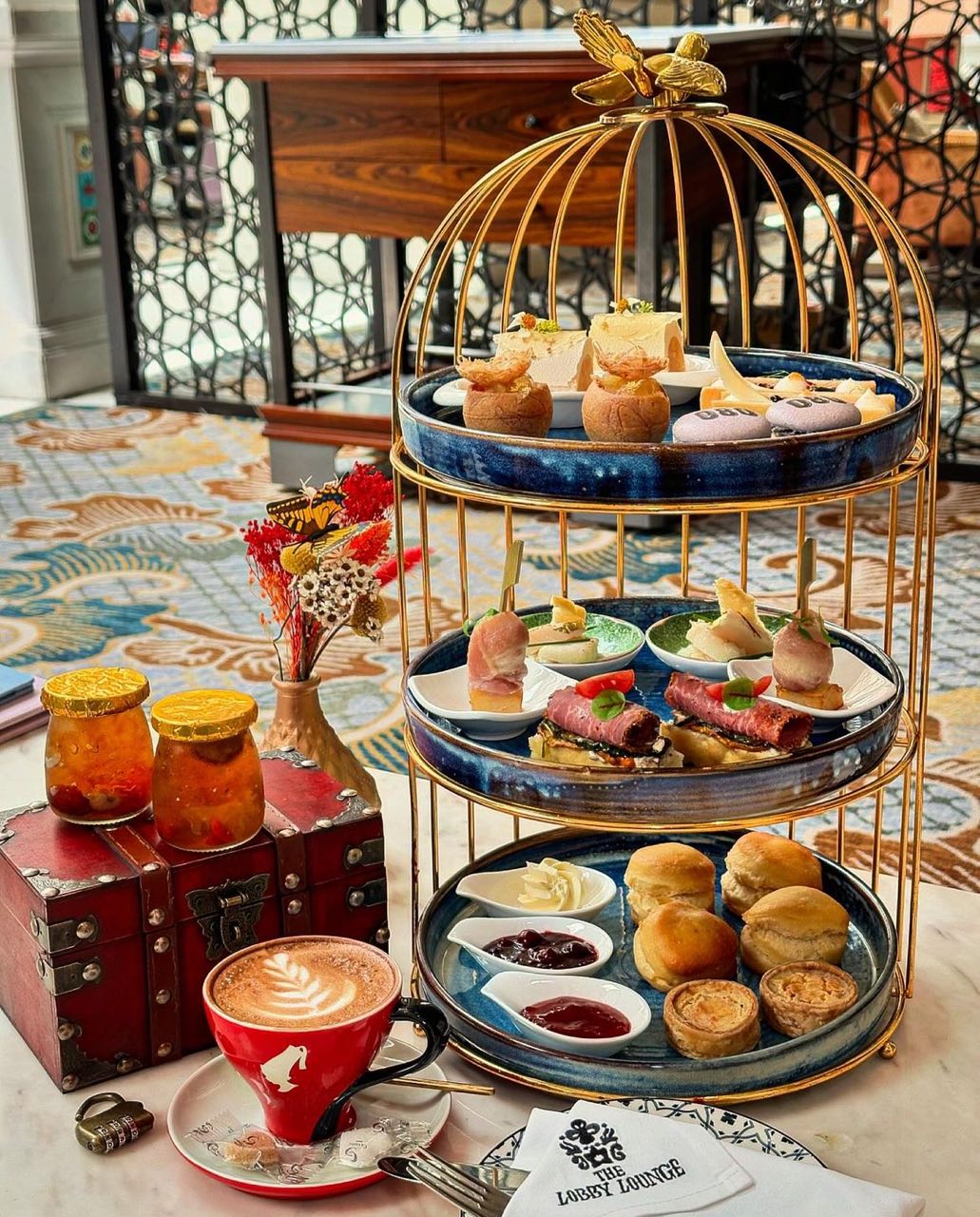 InterContinental Singapore is now offering a luxurious Celestial Bird’s Nest Afternoon Tea (from $65++ per person) at The Lobby Lounge, highlighting premium bird’s nest infused treats for a nourishing and healthy high tea experience. One of the highlights from the set is definitely their 24K Golden Bird’s Nest, featuring entire jars of double-boiled bird’s nest with gold leaf and peach gum, served in a “treasure chest” that you have to unlock yourself!