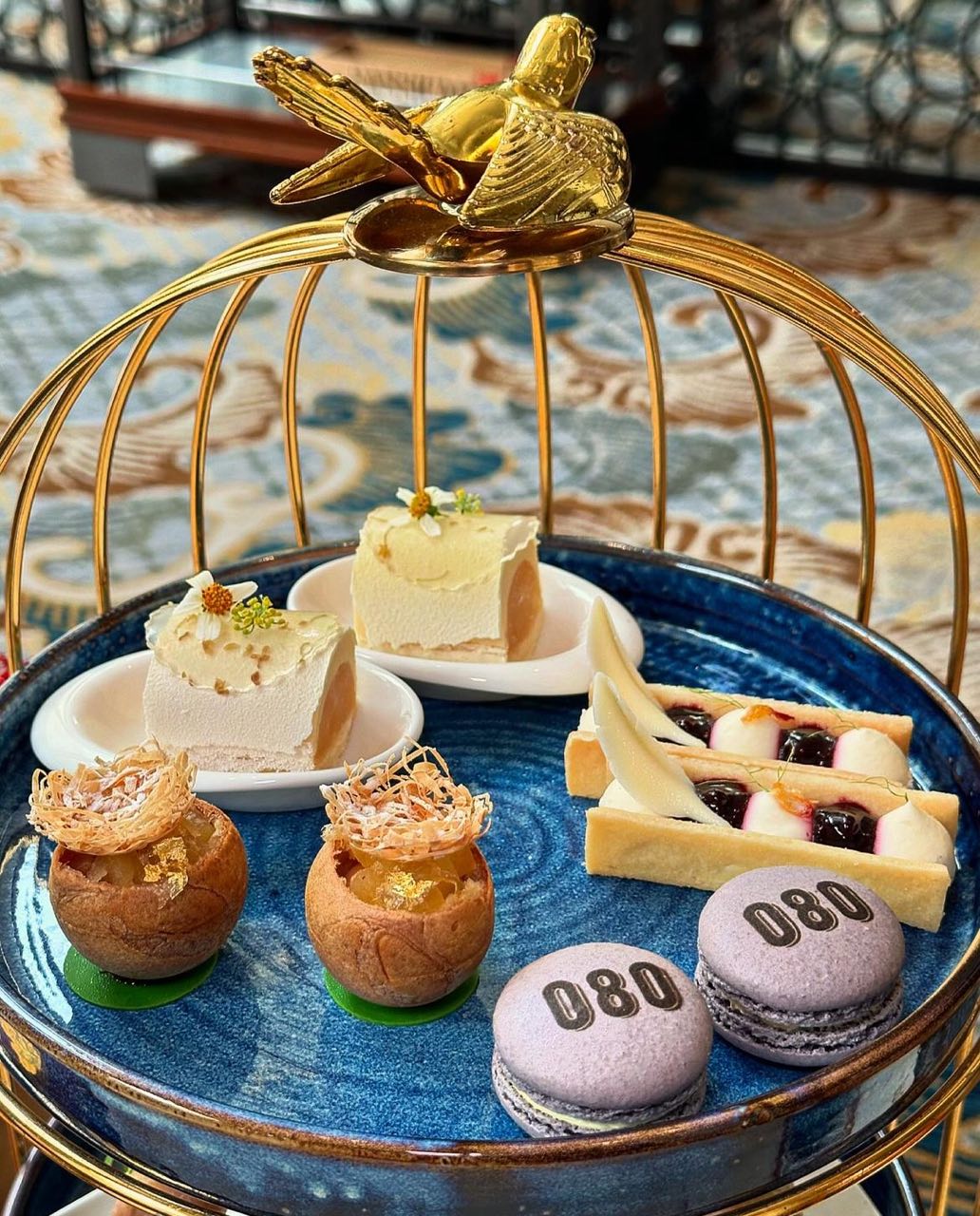Other bird’s nest-infused items from the set include Bird’s Nest Jelly with Hokkaido Scallop and Oscietra Caviar, Snow Bird’s Nest and Caramel Apple Choux and Blood Bird’s Nest Blackberry Tartlet. The high tea also includes other sweets and savouries like Beef Pastrami and Black Truffle Sandwich, Bacon Wrapped Quail Egg Skewer, Smoked Salmon Quiche and Osmanthus Honey Cake, among others. For the full menu, see here.