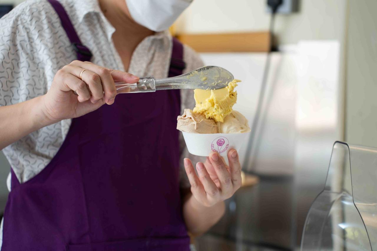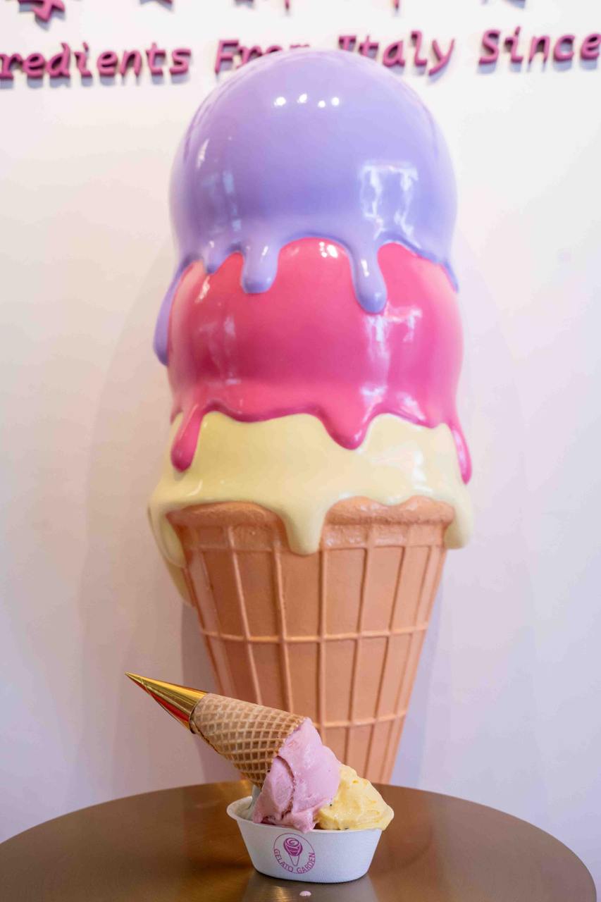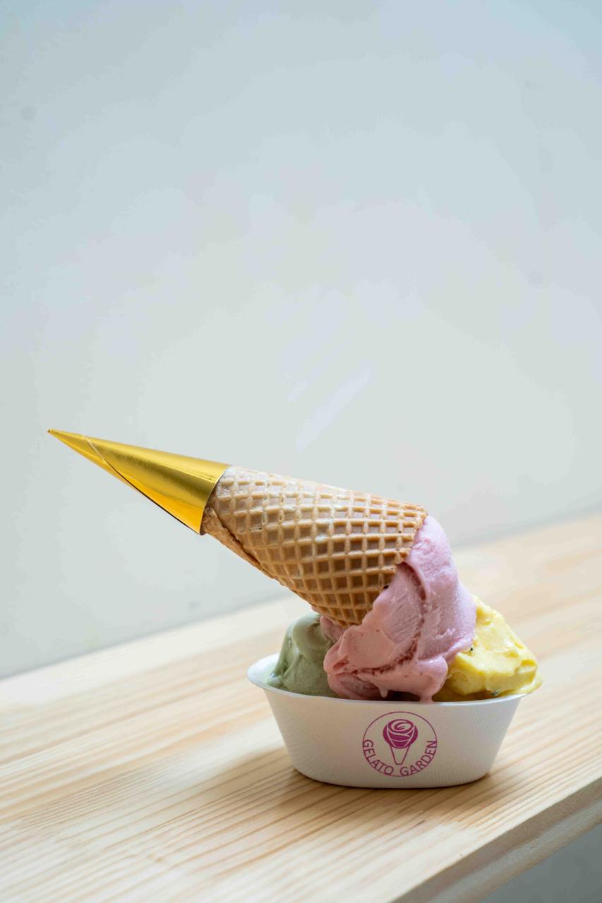 Instead of showcasing all their gelato flavours together using the usual glass display, Gelato Garden uses individual gelato churners for each flavour, reminiscent of the traditional Italian pozzetti display. These “displays” stay churning all day long, keeping the gelato ultra smooth and creamy! You’re allowed to sample the flavours before making your pick, before having your gelato scooped directly from the churner itself.
