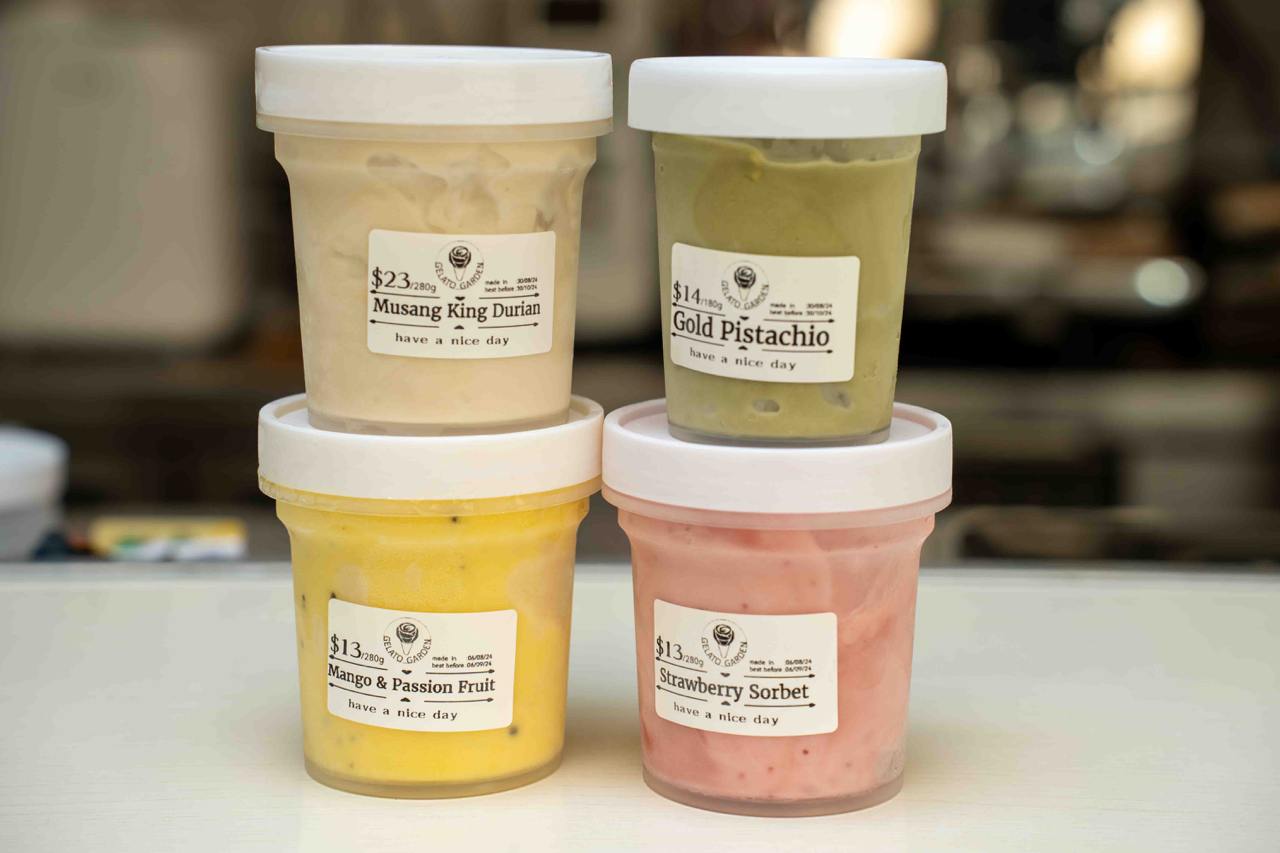 There are over 10 gelato flavours, including Arabica Hazelnut Coffee, Gold Pistachio, Wild Strawberry, Mango & Passionfruit Sorbet, Mascarpone White Chocolate, 70% Dark Chocolate, Peach Oolong, Musang King Durian and more. Scoops start from $6 each, and you can get them in a cup or top up an extra $1 for their handmade waffle cones. The gelatos are also available by the tub for takeaways. Aside from gelatos, they also have specialty drinks like Affogato ($9), Dirty ($6) and Mixed Berries Soda ($7), just to name a few.