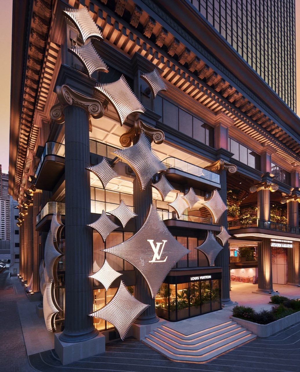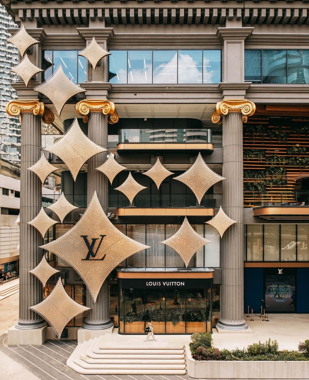 LV The Place is situated at Gaysorn Amarin in Rachaprasong, just under 20 minutes away from the city centre. You won’t be able to miss the extravagant and flashy facade of the building, with giant glittering diamond-shaped motifs decorating the exterior.