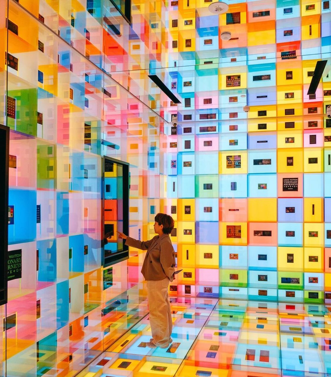 You’ll also find an immersive exhibition called Visionary Journeys, where you can explore the history of Louis Vuitton, through innovative installations and displays like an “infinity tunnel” filled with LV trunks. Entry to the exhibition area is free, but you’ll have to pre-book your slot online here.