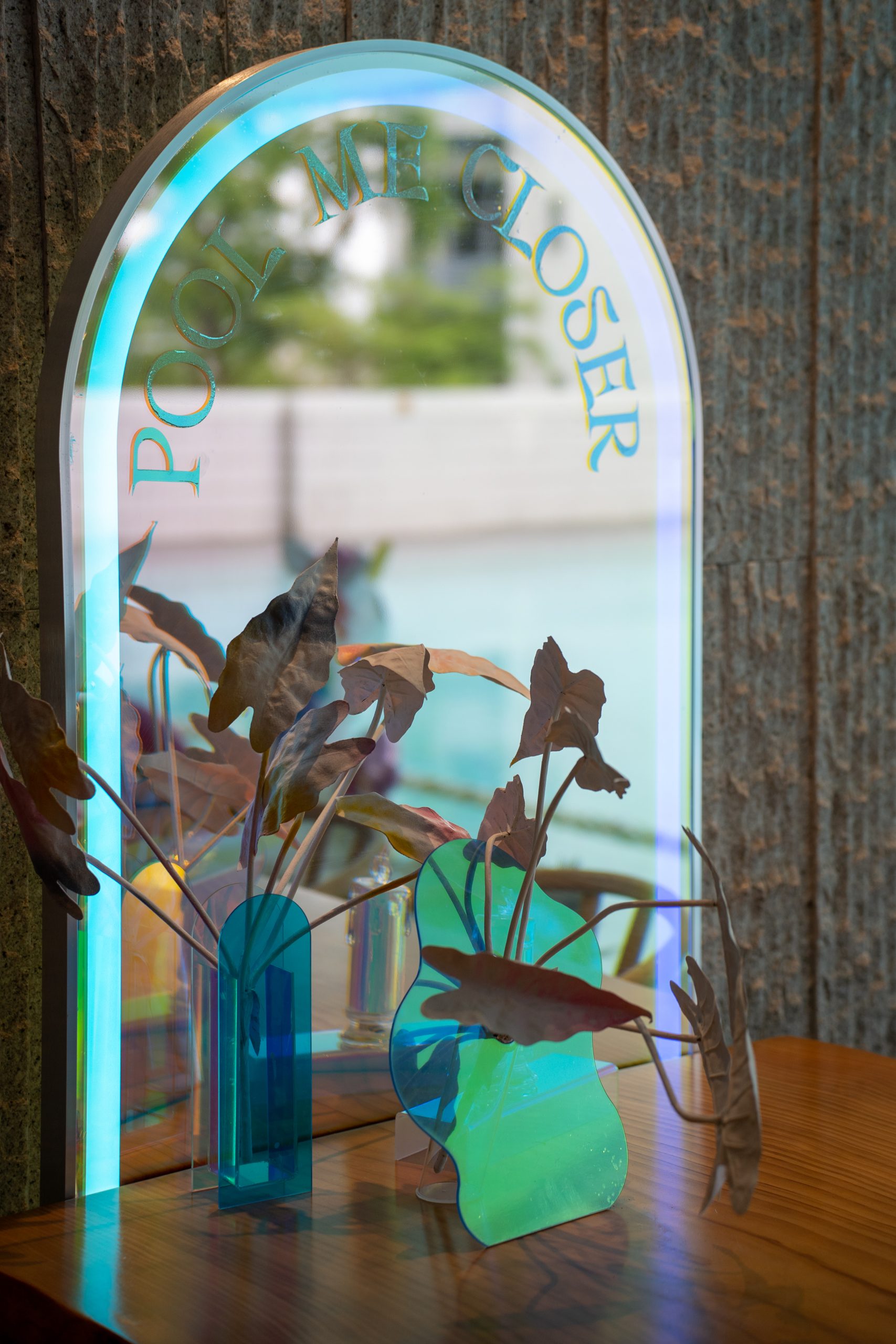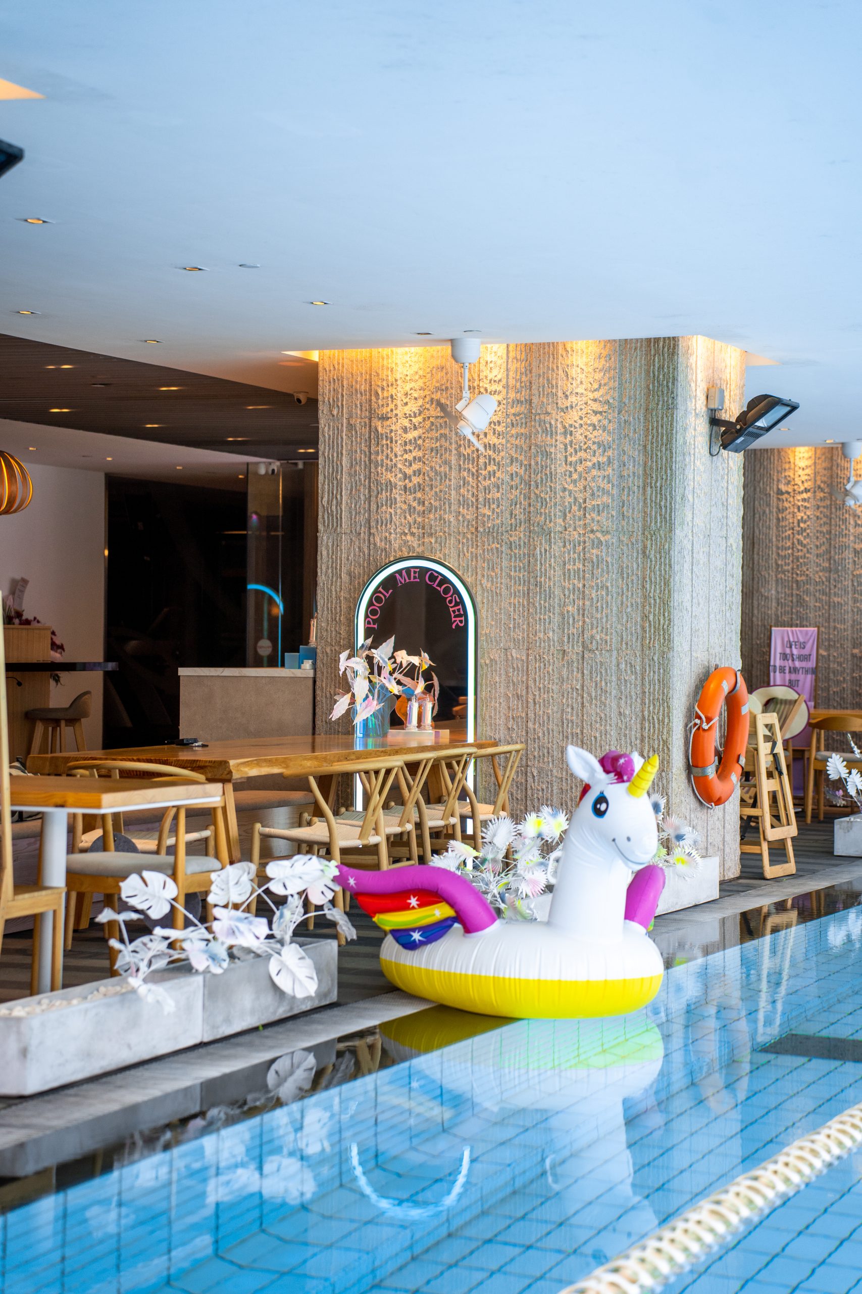 There’s even a vanity mirror and mermaidcore-esque holographic displays for you to primp for all your mirror selfies and OOTDs! There are also quirky pool floats you can use as props for loungey pool shots—unfortunately the pool itself is not open to Nauti Nauti’s diners or the public for swimming, only for residents of the building.