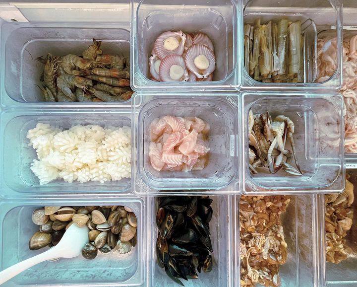 ABC886 Thai Food & Mookata is a new mookata joint tucked away within the Sakae Building at Tai Seng, and they have both air-conditioned indoor as well as outdoor dining areas. The outdoor area even has charming French-inspired rattan chairs, which is a unique touch we’ve never seen in any other mookata spot in Singapore. ABC886 offers a pocket-friendly buffet for just $19.90 nett, with no GST or service charge, and you can enjoy free flow items like oysters, crabs, scallops, prawns, squid, razor clams, mussels, sliced fish, marinated beef, pork, handmade meat balls and all your usual mookata offerings too.