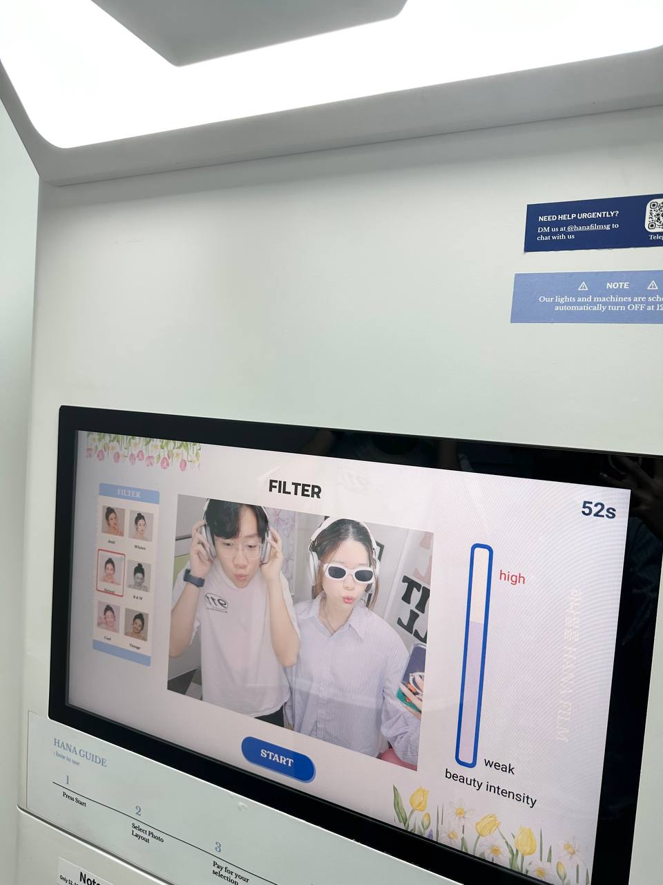 Hana Film provides hair styling tools available for you to touch up before snapping your photos, and you can also make use of fun props like capybara headbands, Y2K-style headphones, sunnies and more.