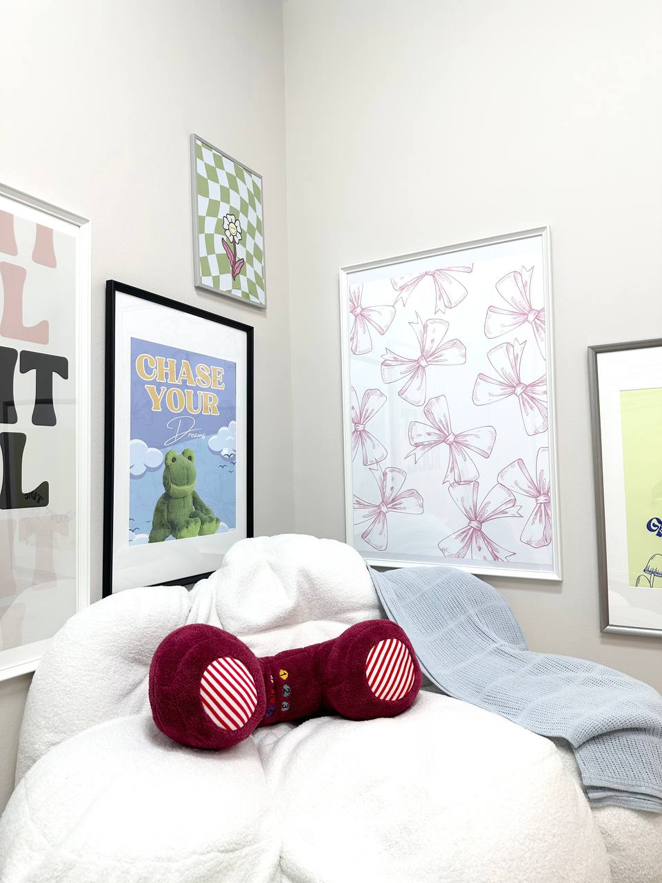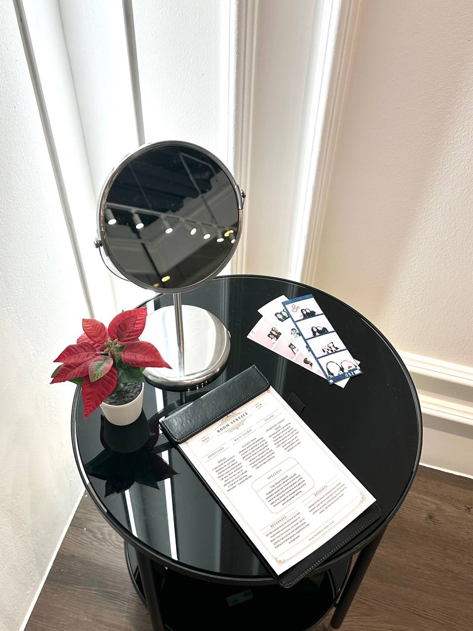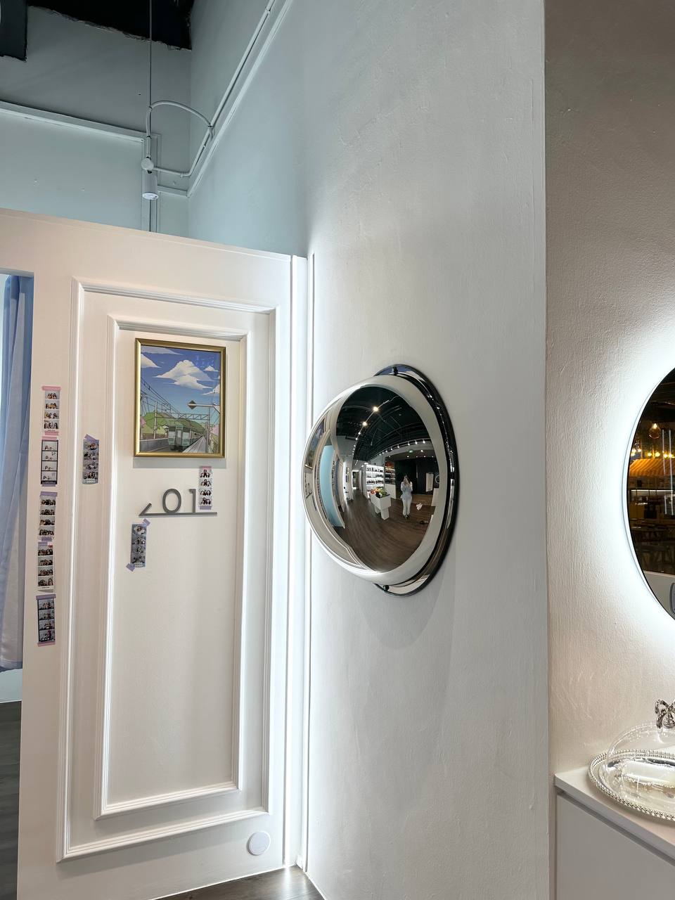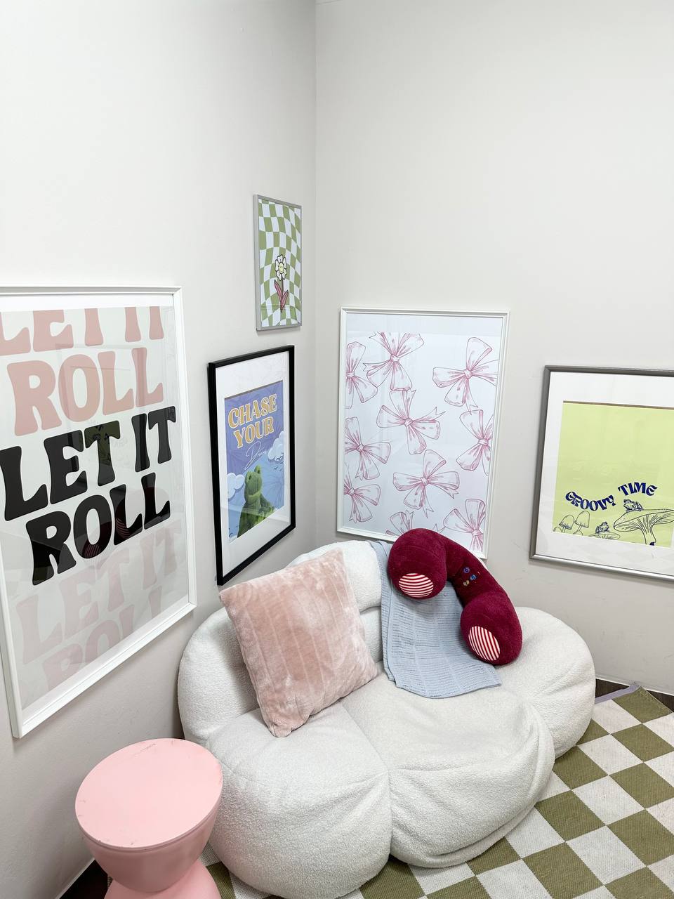 You’ll also find touches inspired by luxe hotel decor, like a golden tea trolley, vanity counters, heavy red curtains, a “room service” menu book, an antique telephone and silver dish trays. There’s even a whimsical coquette-inspired room with girly pastel tones, quirky artworks and a plush cloud-shaped sofa for you to pose on!