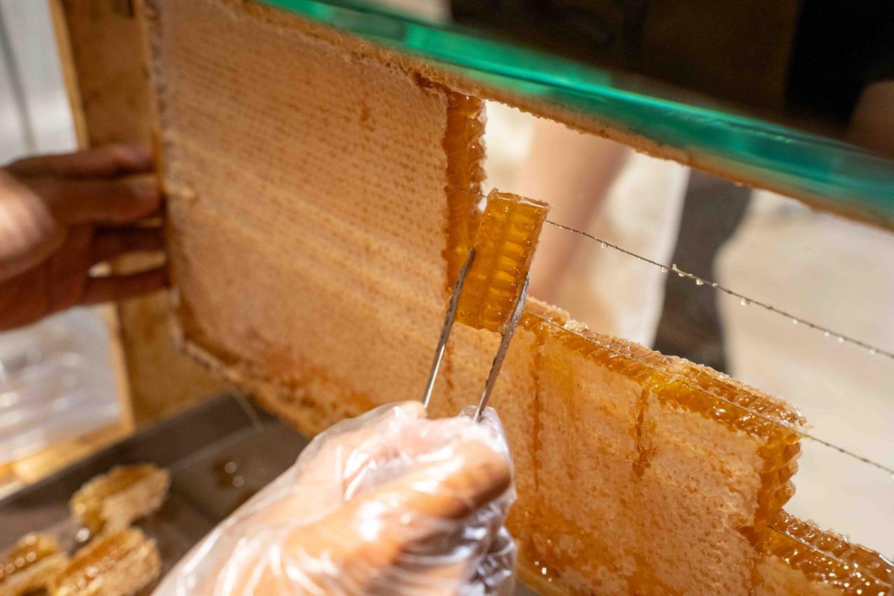 There’s also various flavours of chocolate sauce drizzled for each one. There are currently 4 Kunafa Ice Cream flavours launched at Honeybee: Pistachio, Red Velvet, Nutella and Strawberry. If you like your ice cream extra sweet you can get either the Pistachio or Red Velvet flavours, as they come with a slab of fresh honeycomb on top.