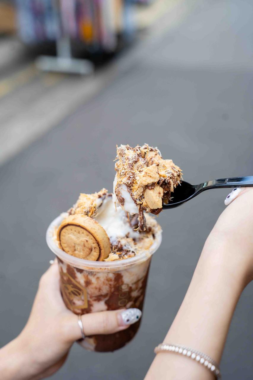 The new Kunafa Ice Cream are priced at $9.50 each, and come with generously heaping double swirls of ice cream, layered with crumbles or cornflakes for texture, and of course various flavours of kunafa. The kunafa sprinkles are added in between the ice cream, and as a final topping, so you get that crunch throughout.