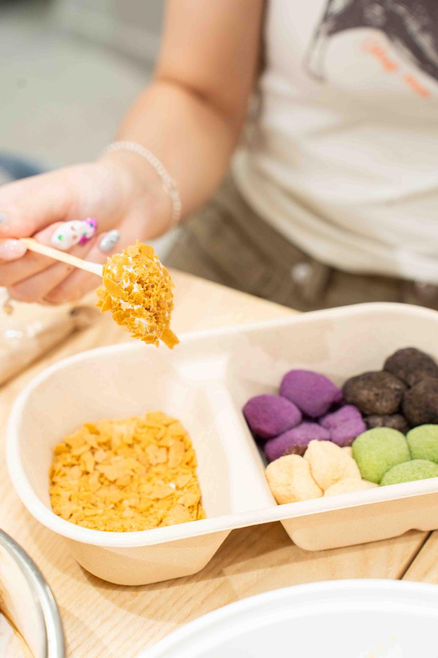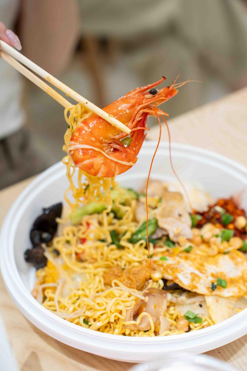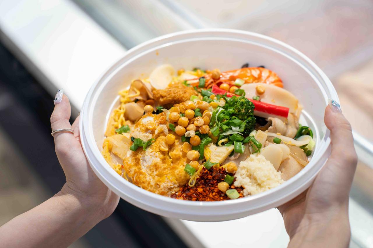 Must-try items include the Signature Hot & Sour Noodles ($6.80) with chewy sweet potato noodles in a spicy, flavourful broth and topped with fluffy egg floss. You can also get soup or dry mala and pick any ingredients you want from their self-service bar at a flat price of $2.28 per 100g—no extra charges for meat or seafood! If you’re just looking to grab a snack, there’s the Mini Crispy Pan Fried Pork Pau ($5 for 10pcs), Taro & Sweet Potato Rice Ball ($2 for 6pcs) or Lava Stone-Grilled Jumbo Sausage ($3). For desserts and drinks, try their signature fermented rice wine-infused drinks or the Mix Mochi with Cheese Cream ($12.90), a DIY-style mochi bento box served with cheese foam and wafer crumbles.