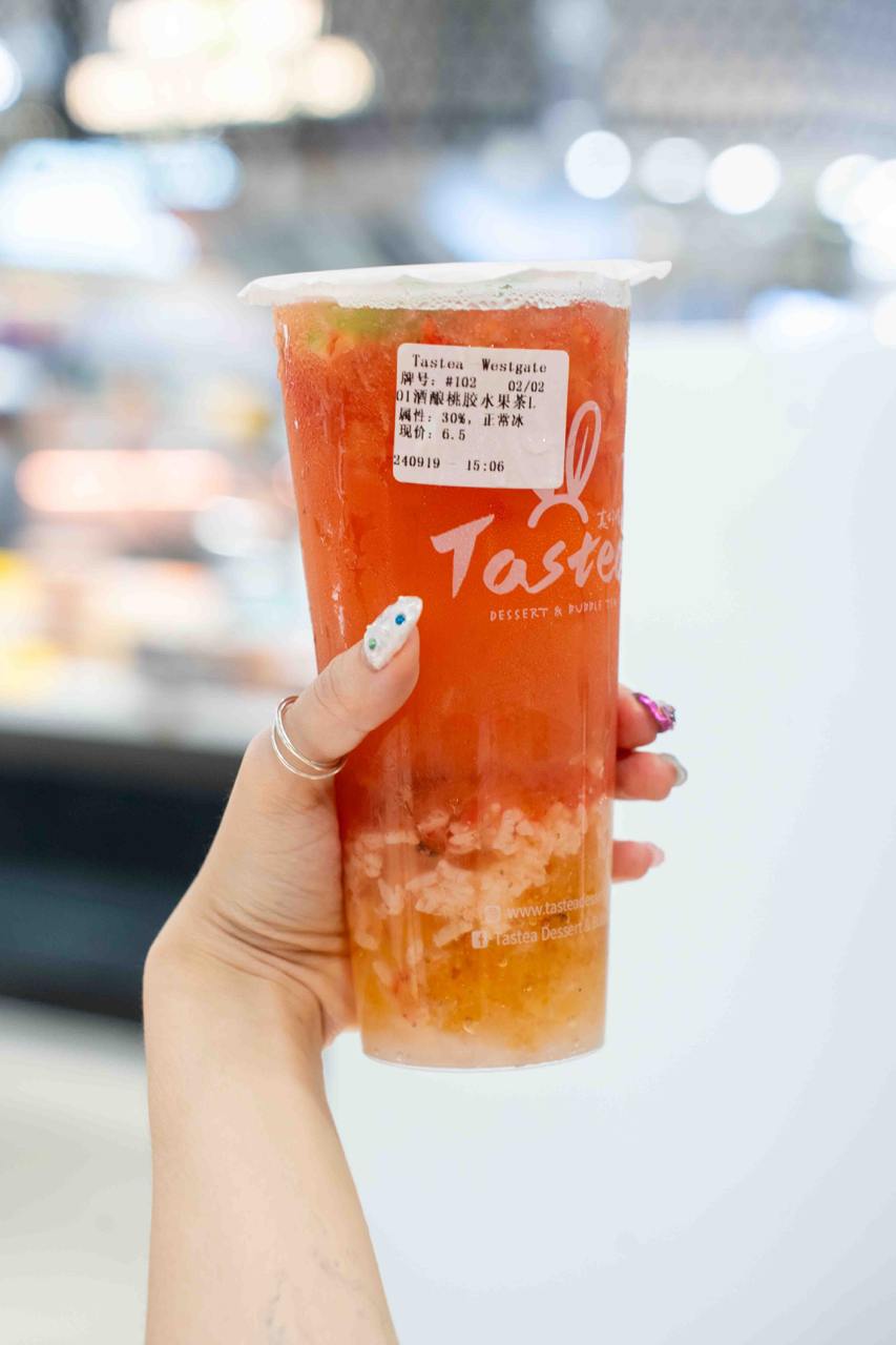 Strawberry Peach Gum Rice Wine Tea, $6.50