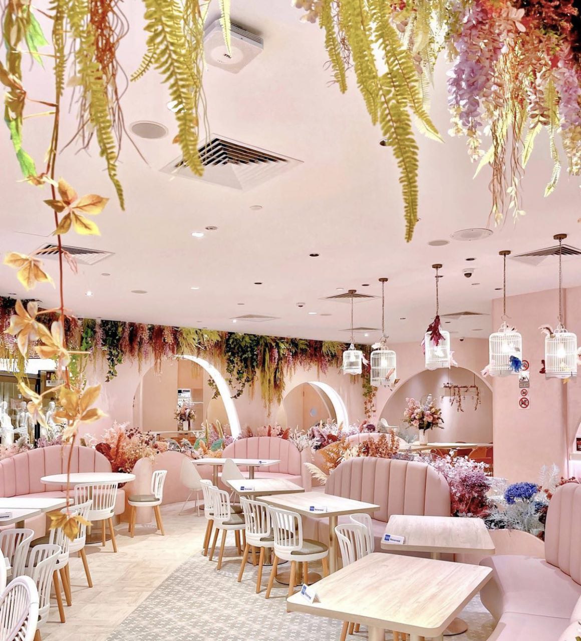 Café Q Classified is the latest addition to Orchard’s rich café scene, and what an entrance! Café Q has an absolutely beautiful concept: with pink walls and plush pink sofas, as well as countless floral fixtures hanging from the ceiling and all around.