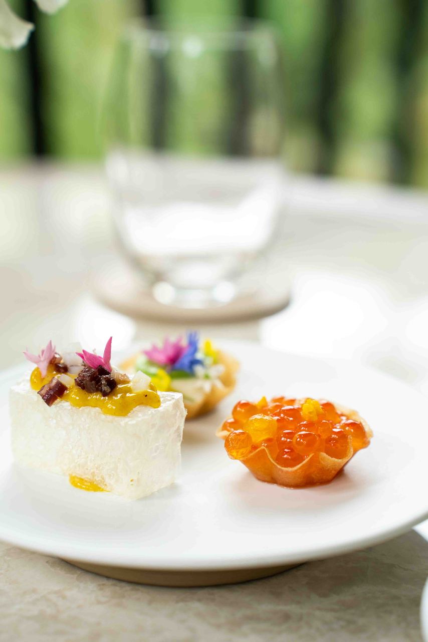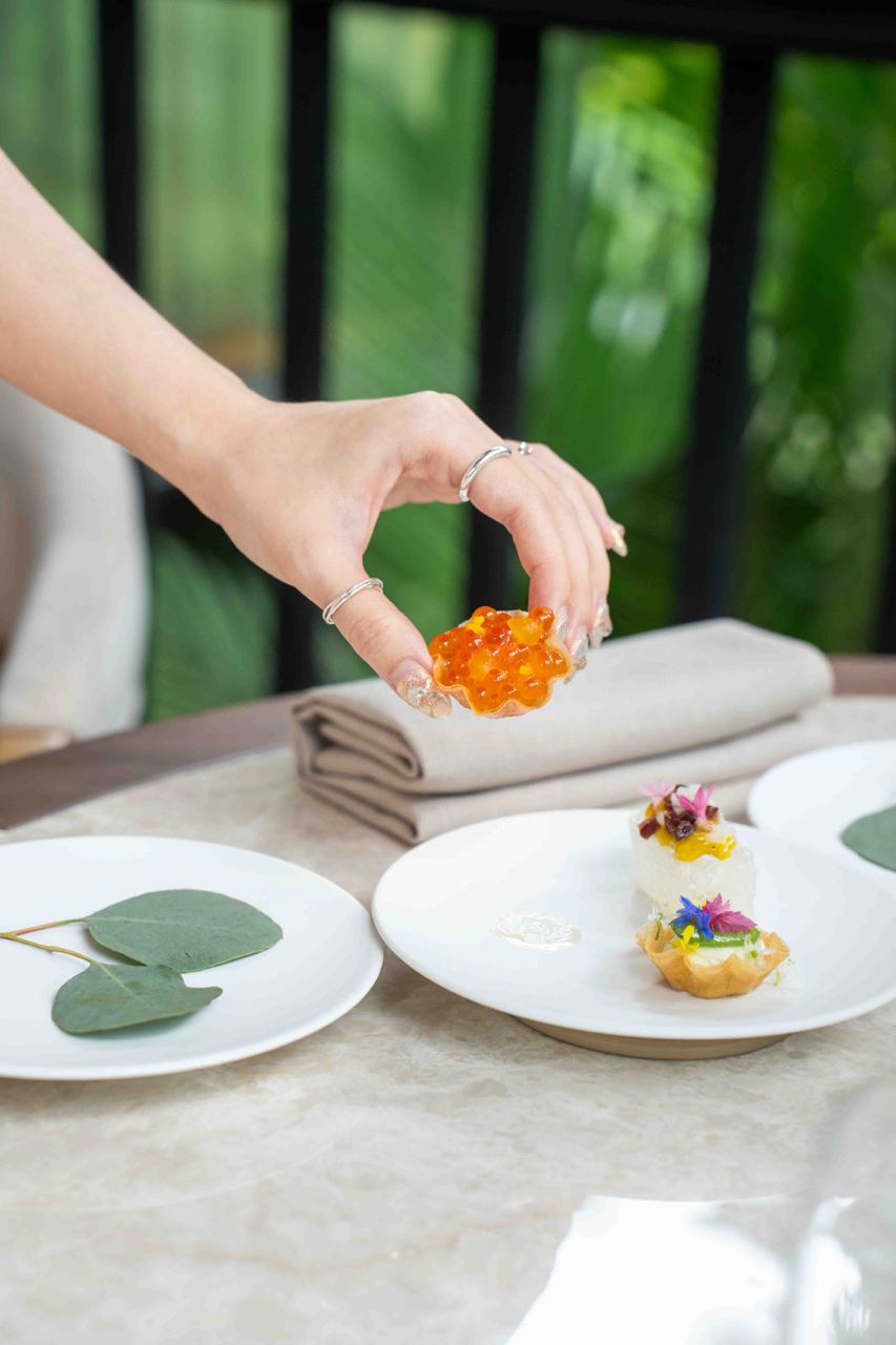 You’ll notice that every dish comes beautifully plated and embellished with edible seasonal flowers and herbs, a nod to the surrounding nature that inspires them. The brunch course starts off strong with a series of amuse-bouche: out of which our favourite is the Roia Toast, a modern take on the iconic curry puff, served atop translucent “crystal bread” for an ultra crunchy and airy mouthfeel. Ikura lovers will definitely reach for the Ikura and Hamachi Tart, while the Pickled Cucumber Tart makes for a refreshing start to the meal.