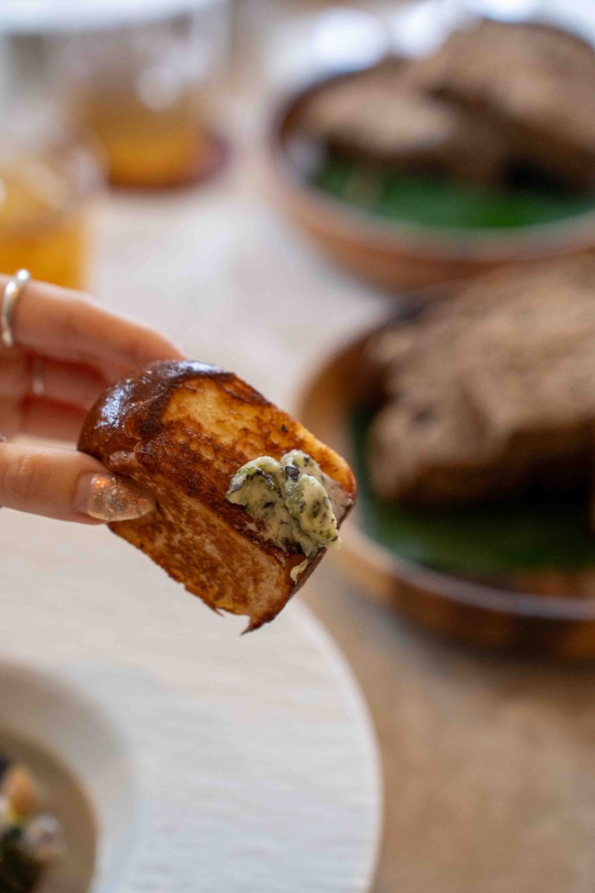 Next up is the Mille Feuille Saint Jacques: an absolute treat for the eyes with its complex layers of crisp pastry and stunning visuals—we almost couldn’t bear to dig into the dish. The bread course is also not to be overlooked, and we were served a duo of thickly-sliced rye bread and seared brioche buns along with a dollop of shio butter. If we could only have one of the two breads (to save space for the rest of the course, naturally), we would definitely go for the seared brioche: a super soft and fluffy bun that’s seared off on the grill for a slightly crispy exterior.