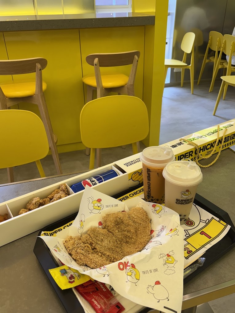 Super Chicken boasts over 300 stores globally, with a whopping over 100 million of their famous crispy fried chicken chops sold worldwide since their inception in 1997. The Singapore branch features a 2-storey dine-in restaurant, with a striking sunny yellow interior and neon signages featuring their iconic chicken mascot.